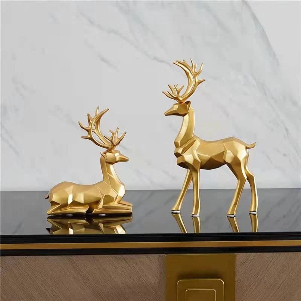 2 Pieces Christmas Reindeer Figurines Decor Nordic European Style Deer Statue Fireplace Window Desk Bedroom Shelf Ornament for Home Living Room Office Decoration (Gold, Medium) Product Details Product Dimensions: 4.72 x 1.97 x 7.48 inches Item Weight: 1.01 pounds Item model number: A49-70 Date First Available: July 19, 2021 Specification: Material: Resin Color: Gold/Green Size: Standing Deer: 12 x 19 cm. Sitting Deer: 11 x 13 cm. Package includes: 2 x Reindeer Figurines