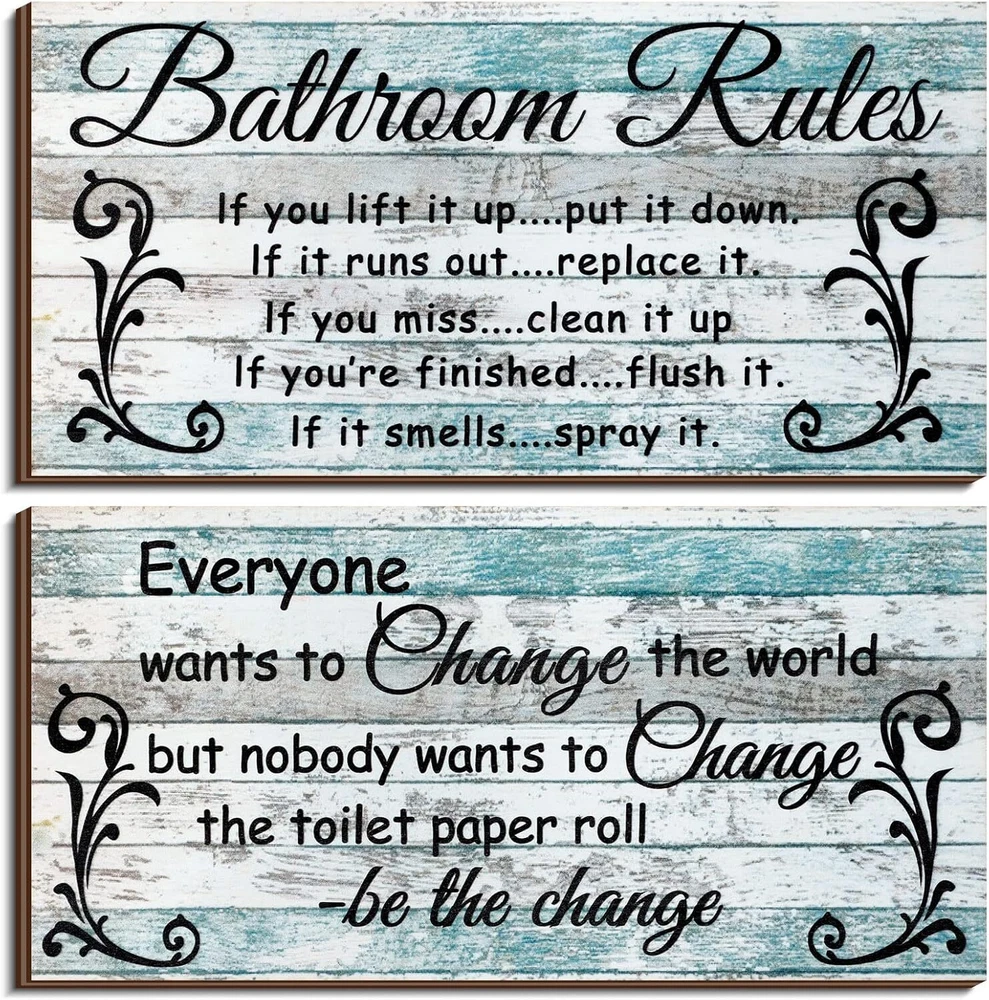 2 Pieces Funny Teal Bathroom Signs Beach Theme Wall Decor Chic Style Product Details Color: Chic Style Brand: Jetec Material: Wood Theme: Words & Quotes Recommended Uses For Product: Property What you will get: the package contains 2 pieces of funny bathroom signs and swivel loop hangers, each of them measures approx. 12 x 6 x 0.2 inches, a suitable size for you to decorate your home, and there are bathroom rules and to be change on it, all of them are bathroom themes, to make your visitors feel warm and comfortable Widespread applications: there are lots of places where you can hang your ocean theme beach bathroom decors: bathroom walls, furniture mantels, patio, front porch, living room, fences, and so on, it would be a nice home decoration for your relaxing bathroom, it depends on where you want to hang it, what's more, you can hang it single or set Reliable material and UV printing: the decors use reliable wooden construction, to make sure you can use it for years and years, also wooden decors have no bad smelling compared with PVC material, what's more, our UV printing technology makes the letters and color clear and stable, it won't change color or disappear under the sunshine Easy to use: there are 2 swivel loop hangers equipped on your package, it's the most convenient and widespread way to install it, the only thing you need to do is put it on where you want to hang, whether you hang or remove, there is no scratching to your home Nice gift idea: we always send presents to people around us to show our feelings about them, sending the bohemian decor wall tapestries to your family, neighbors or friends as daily gifts is a brilliant idea, and it also can fully express your appreciation and enthusiasm to them, what's more, when they look at the wall, they will remember you