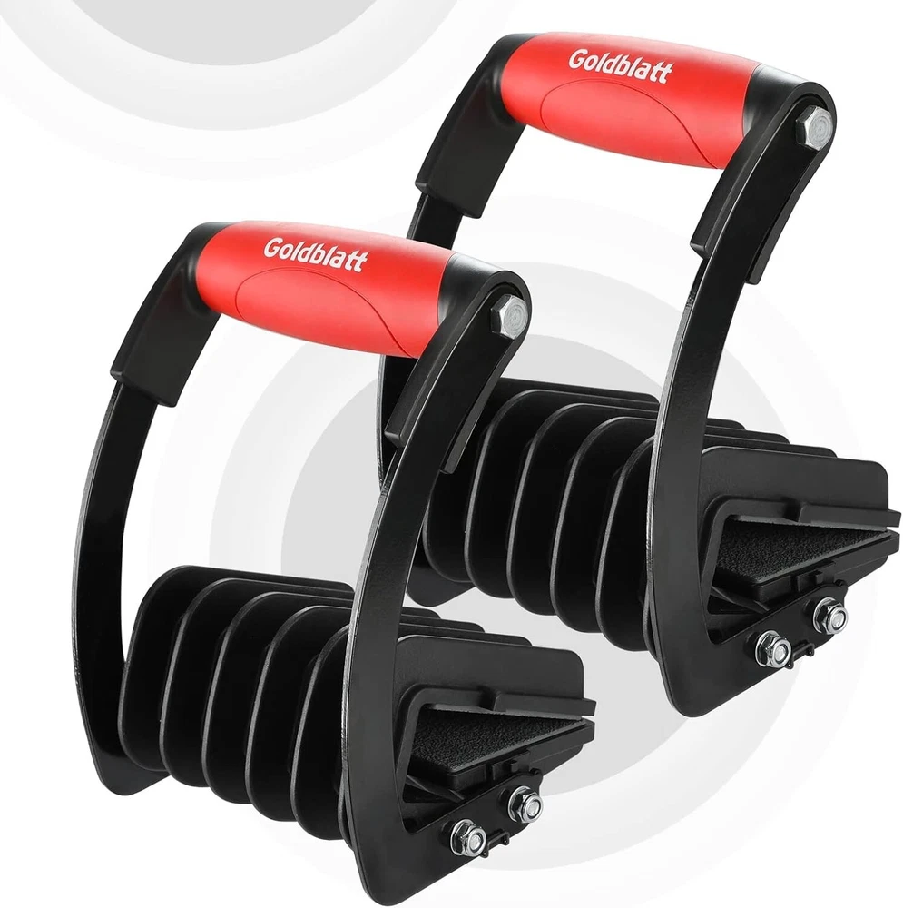 2 Pk Drywall Panel Carrier Plywood Lifting Tool for Wood, Synthetic Cement Board Tough Leverage Construction - The leverage created by the weight of the panel and the unique jaws makes it easy to operate by 1 person, 1 hand; Dual-arm design and impact-resistant high-grade synthetic metal ensures a strong traction Self-adjusting Gripper Clamp - Golablatt panel lifter features the firmly durable, impact-resistant fiberglass with rubberized TPU gripping pads mounted on both clamping plates, increased friction of contact to prevent slipping and protect the surfaces of the sheet from being damaged. Suitable panel thicknesses up to 3/4 inch thick Safe & Energy-efficient - The weight is distributed evenly when the carrying clamp handle is placed centrally on the panel. The clamp grips as tight as you lift. It allows you to lift and move the sheet with a straight back, eliminating the requirement of bending over to get under the bottom. Less weight pressure with this tool and greatly reduced risk of injury to the back, neck, shoulders, and arms Soft-Grip Handles - Ergonomic soft-grip handle that makes carrying sheets effortless, and it's easy for a single person to carry full sheets of material with only one hand. It can hold up to 2 panels at once, single accommodating loads of up to 200 pounds Professional Grade - Use the gripper to grip and carry MDO or MDF panels, drywall, plywood, tabletops, sheep metal, OSB, melamine and other sheet goods