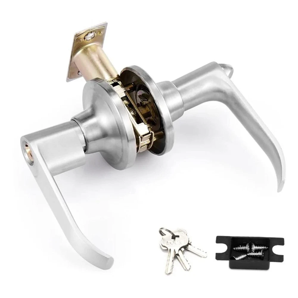 Specification: Item Type: 2 Industrial Door Handle Lock Material: Copper and stainless steel Applicable Door Thickness: Approx: 35-50mm/1.37-1.96in Color: Silver Application: Suitable for bedrooms, bathrooms, hotels, offices, schools, storage rooms, basements, internal doors, front doors, kitchens, children's playrooms. Package List: 1 x Brass Core Lock 1 x Lock Latch 3 x Keys 【Safe and Reliable】the lock hole input handle, the lock hole input function is perfect for outside doors. Keyed door locks have a cylinder with a lock hole on the outside of the house that can only be opened with a special key and a lock cylinder that fits inside and turns. Increase and protect your property from burglary. 【High Quality Material】The door lock is made of stainless steel and brass, featuring high hardness, stability and soft touch, strong and durable. With a premium silver finish, smooth surface and sturdy column bolts to prevent breakage, this is the door lock you must have. 【Versatile】They fit most door types and are suitable for doors from 35-50mm/1.37-1.96in thick. Suitable for bedrooms, bathrooms, bedrooms, hotels, offices, schools, universities, storage rooms, toilets, basements, internal doors, front doors, old schools, hotels, kitchens, children's playrooms. 【Easy to Install】You will receive brass core lock*1, lock latch*1, key*3, easy to install, easy for person to operate, simple installation can save your time. This door handle lock is easy to clean, comfortable to touch and smooth to open and close. 【High-Quality After-Sales Service】 Your satisfaction is our greatest pursuit, we are committed to providing customers with a pleasant shopping experience and satisfactory after-sales service. If you have any questions, please feel free to us. We will give you a satisfactory answer within 24 hours.