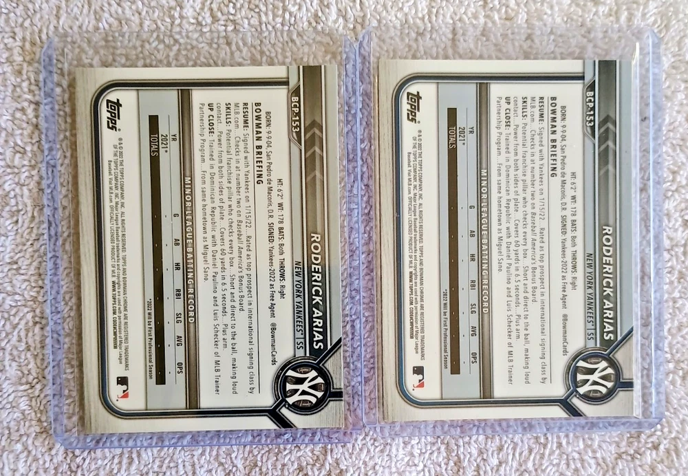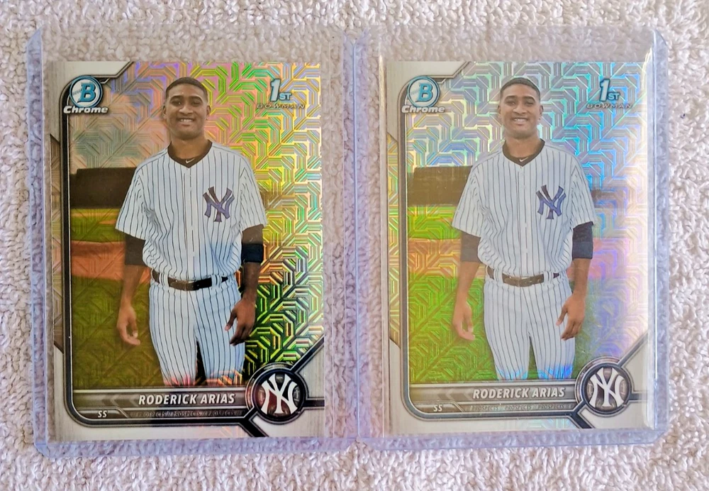 2 RODERICK ARIAS 2022 BOWMAN CHROME MEGA MOJO REFRACTOR RC LOT # BCP153 YANKEES SHIPPING WILL BE $4.99. I DO COMBINE SHIPPING FOR ADDITIONAL ITEMS PURCHASED. PLEASE CONTACT ME FOR DISCOUNTED RATES. USPS FIRST CLASS SHIPPING UNLESS OTHERWISE LISTED. I ONLY SHIP TO THE U.S. EBAY SELLER WITH 100% FEEDBACK. PLEASE VIEW MY OTHER LISTING. MONEY BACK IS GURANTED IF YOU NOT SATISFIED WITH THE RETURN OF THE ITEM OR ITEMS.