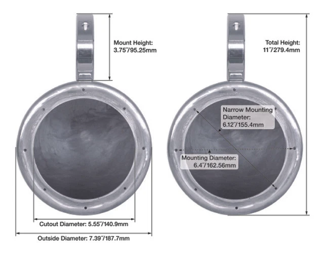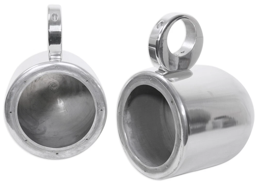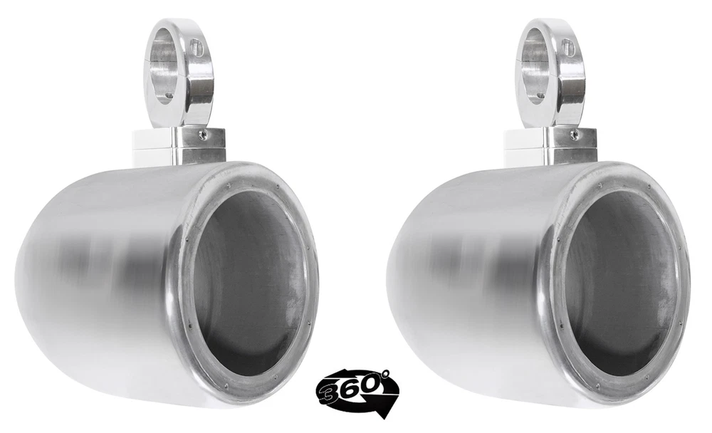 Car Audio & Video Pro Audio Marine Audio Lighting Karaoke Home/Portable Audio Package: Pair Rockville 6.5" Silver Aluminum Wakeboard Tower Speaker Enclosures + Pair MAC360C 360 Swivel Wakeboard Tower or Surface Mount Clamps 4 Rockville Pods Click Thumbnails to Enlarge Condition and Warranty Condition: BRAND NEW IN ORIGINAL PACKAGING Warranty: 1 YEAR AUDIOSAVINGS Product Description Package Includes: (1) Pair Rockville 6.5" Polished Silver Aluminum Wakeboard Tower Speaker Enclosures (1) Pair MAC360C 360° Degree Swivel Tower/Surface Mount Clamps 4 Rockville Wakeboards Video of MAC65S: Includes: 2 Wakeboard Cans All mounting hardware (2) 2.375” rubber inserts (2) 2.25” rubber inserts (2) 2.5” rubber inserts (2) 2” rubber inserts Rockville is proud to introduce our all new line of aluminum wakeboard cans. The MAC65S comes in pairs and includes our rugged universal aluminum clamp for easy installation to any wakeboard tower pole measuring from 2" to 2.5" diameter. Six precision molded high impact rubber inserts guarantee fitment on towers from 2” to 2.5”. Our clamp inserts are precision-fitted to sit perfectly inside the metal clamps. The speaker terminals are safely enclosed inside the waterproof speaker canister. ***Please note if you need an insert to accommodate a 1.75" diameter tube please let us know and we will send one out to you free of charge! These awesome pods are built of hand polished super strong aircraft grade 6061 aluminum. They are fully marinized which means they’ll withstand the elements on the water. These cans are 100 % waterproof. What makes our technology the best on the market is that our pods are internally wired! This means the terminals are inside the pod and the wires are fed through pre-drilled holes on the pod and clamp. Simply align the wire opening with the hole on your tower and you are done! No exposed wires or terminals! Aluminum cans will last forever! The sound quality of these are phenomenal! These are the perfect amount of air space to give you the perfect sound quality with the leading marine speakers on the market from brands like Kicker, Rockford Fosgate, etc. Our high efficiency design means more audio output from the same speakers! This means you get louder, cleaner sound with less distortion using our wakeboard enclosures than with other brands. Features: Pair of Rockville MAC65S polished chrome aluminum can wakeboard tower enclosures Made of high quality 6061 aircraft grade aluminum Hand polished for beautiful chrome finish 100% waterproof and fully marinized against salt and fresh water conditions Internally wired for clean install—no exposed wires or terminals High efficiency design features the perfect airspace for 6.5” speakers Rugged universal mounting clamps made of 6061 aluminum Includes precision molded, high impact plastic inserts for tower fitment from 2” diameter to 2.5” diameter Mounting Depth - 6.7" Total Depth - 9.15" Cutout - 5.55" Diameter - 7.39". Mounting diameter - 6.4" (Narrow diameter - 6.12") Height of mount - 3.75" Total height of unit - 11" *Although the pre-drilled holes will accommodate most speakers on the market, there may be some that don't fit. If that is the case you can drill holes into the lip of the can to line up with your speaker's mounting holes. Video of MAC360: Includes: (2) Swivel mount kits (2) Rubber washers that go between the swivel mount and the MAC clamp (2) Stainless steel quick release knobs (1) Hex key (2) M6 x 20 socket head bolts (to connect the block to the speaker enclosure) (2) Stainless steel deck screws for surface mounting Description: Rockville is proud to introduce a new accessory which is the perfect addition to our line of aluminum wakeboard enclosures. The Rockville MAC360 is a dual -purpose mounting clamp which will allow you to swivel your MAC enclosures 360 degrees and give you the ability to surface mount them. Surface mounting gives you the flexibility to quickly and easily install these enclosures anywhere on your boat! To add this clamp to your enclosure simply unscrew the existing clamp from your MAC can and screw the swivel bracket between the old clamp and the enclosure. These clamps are manufactured with high quality aircraft grade aluminum making them extremely durable and able to withstand the most extreme conditions. Features: Pair Rockville MAC360C 360 Degree Swivel and Surface Mount Clamp for MAC65, MAC69, MAC80, MAC90, MAC525 Pods Marine grade aluminum swivel clamps Designed for use with MAC525, MAC65, MAC69, MAC80, MAC90 speaker pods Aircraft grade aluminum construction Adds 360 degree rotational swivel to your MAC cans Ads Surface mount option to your MAC cans Includes all necessary mounting hardware Color: Polished chrome Specifications: Product weight: 1.5 lbs per pair Unit dimensions: 3.1" x 2.3" x 1.5" Return Policy AudioSavings Return Policy: At Audiosavings, we strongly believe in customer satisfaction and therefore offer free return shipping within 30 days of purchase on all items returned to us within the continental USA. Prior to returning merchandise, contact us and we will give you a return authorization # and a return label. You may return this item for a refund within 30 DAYS of purchase. Warranty Repair/Exchange Period: 1 YEAR If your item is defective or you want to return it for any reason within the first 30 days of when it was delivered to you; you have the following options: We will send you a pre-paid shipping label to replace the item for a brand new one. We will send you a pre-paid shipping label to exchange the item for another item of your choice. If the item you chose is more or less money we will work out the price difference with you. If you are returning a working item in used condition for a refund there will be a 20% used item fee deducted from your refund. All replacements and exchanges are free. Replacement/Processing Time: Your replacement or refund will process within 3-5 business days of when we receive the it
