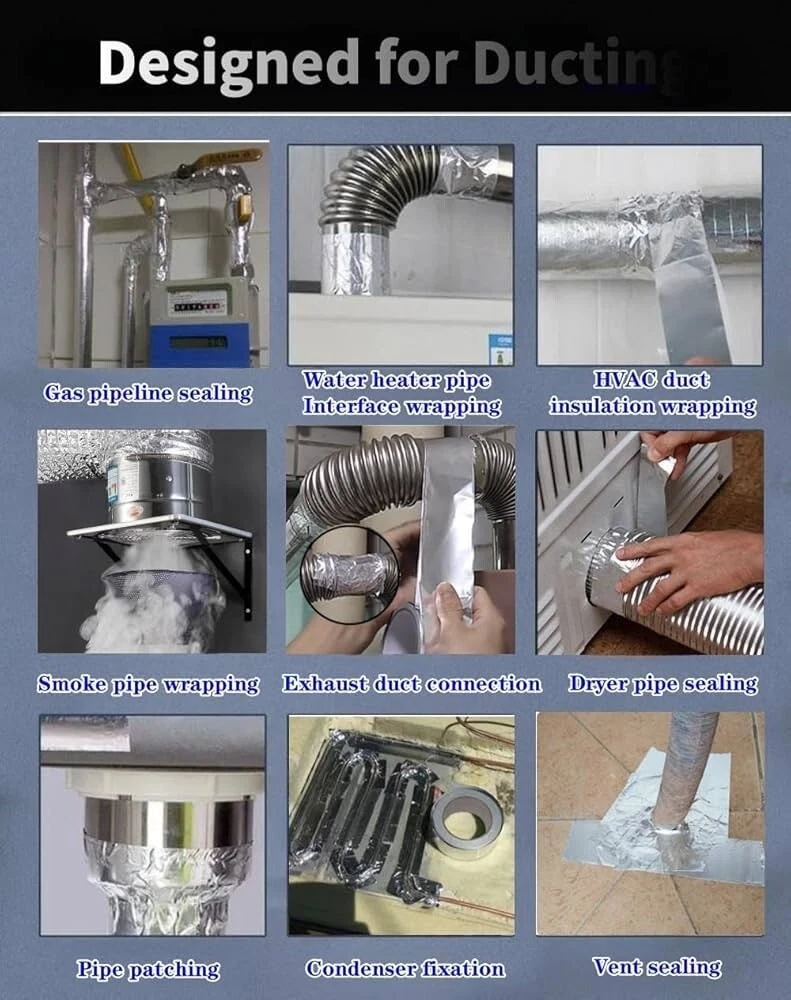 Color Silver Material aluminum foil + acrylic pressure-sensitive adhesive Number of Items 1 Recommended Uses For Product Indoor, Outdoor, Electrical, Plumbing Excellent Performance Aluminum foil tape has excellent thermal conductivity, sealing, insulation, temperature resistance, shielding, moisture resistance, and corrosion resistance, making it play an important role in different fields. Professional Grade Aluminum foil tape is made of high-quality adhesive and metal foil material with high aluminum content. no sticky residue, has a strong initial viscosity, and can maintain stable performance for a long time. High Temperature Resistance Designed for harsh weather conditions. Metal tapes have excellent temperature and flame resistance, allowing them to remain stable in the range of low and high temperatures from -20°C to 180°C, and are not easy to fall off, deform or burn.