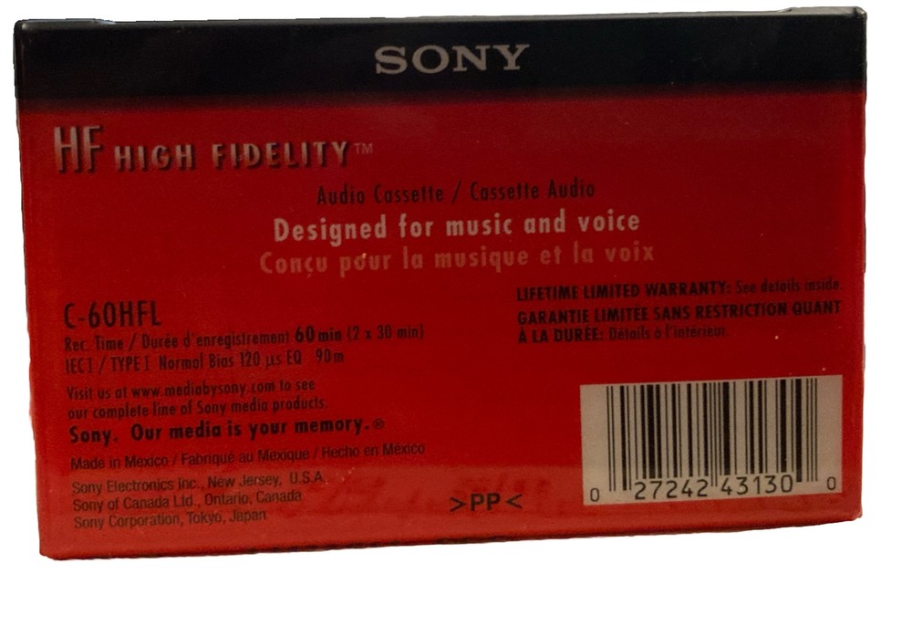 Two Sony C60HFR audio cassette tapes 60 minute audio tape High Fidelity Designed for both music and voice New, in original wrapping Made in Mexico Free shipping
