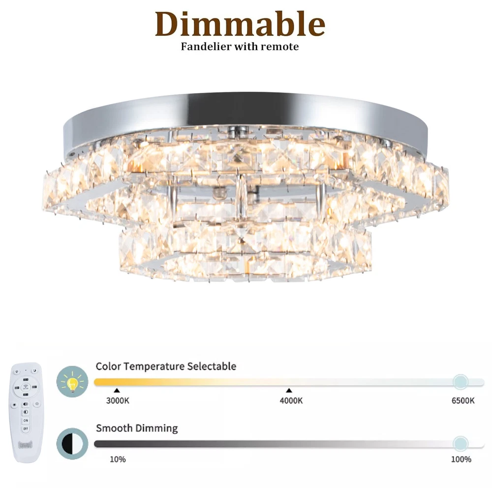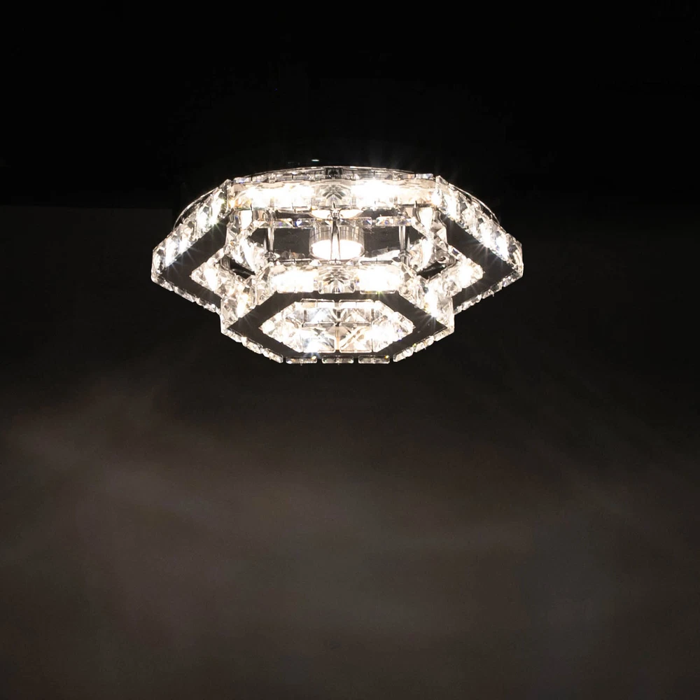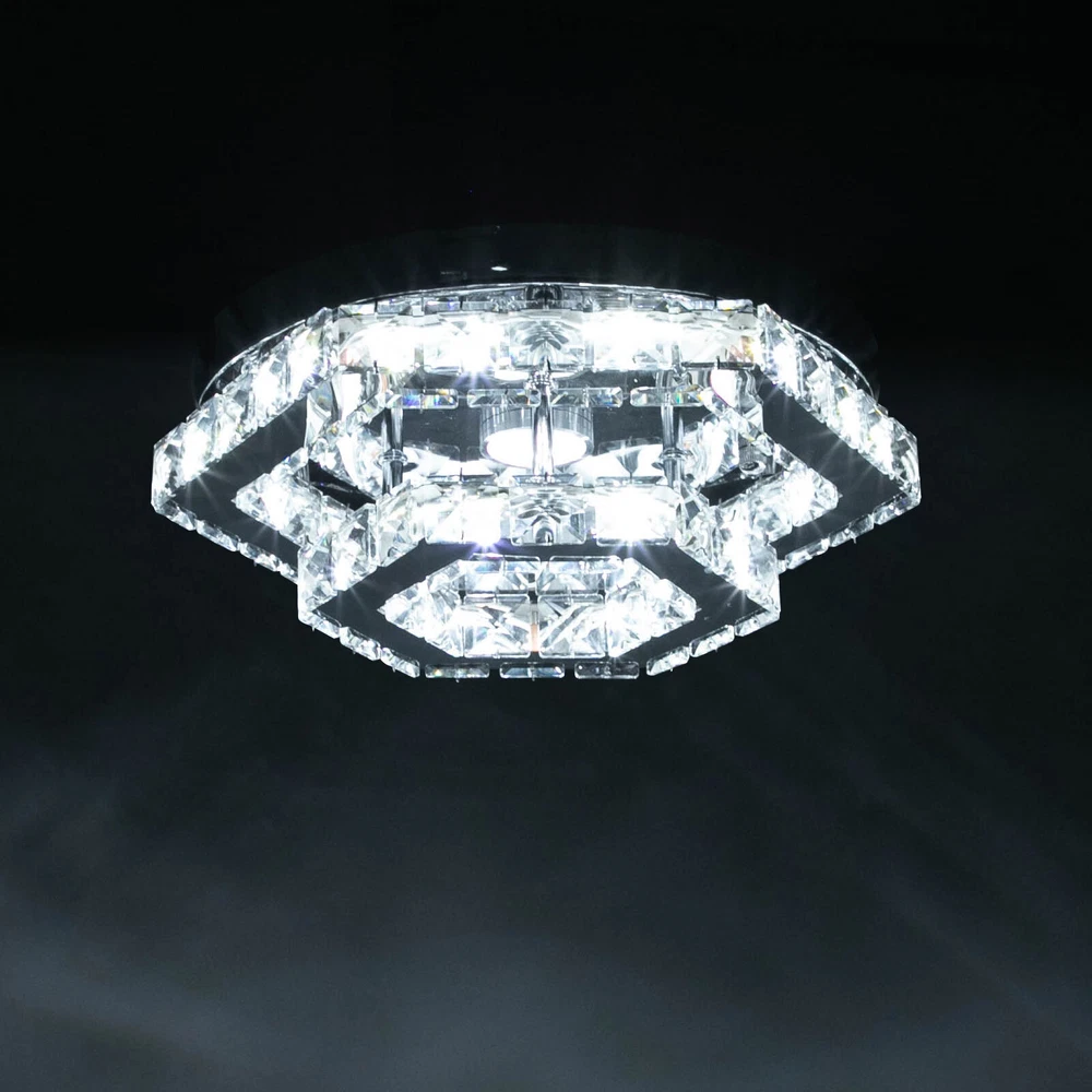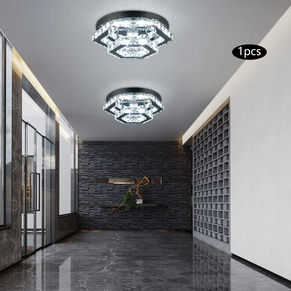 Description This crystal ceiling light combines a sophisticated look and a very modern atmosphere, not only creating a romantic and warm atmosphere for the living room but also creating a high-quality lifestyle. The high-quality material and exquisite workmanship make it durable. Bring it home quickly and add infinite excitement to your home environment! Key Features Build to Last: High-quality stainless steel, crystal, and exquisite laser cutting, and welding processes make the product resistant to high temperature, corrosion, and fading, which reduces the frequency of replacing lamps. Wide Application: The wide voltage (85-265V) allows it to be used in a wider range of applications. Excellent Light Source: The environment-friendly and energy-saving LED light with a high color ind 2 Tiers Crystal Ceiling Light, Modern Ceiling Mount Lamp Fixtures Remote Control Description This crystal ceiling light combines a sophisticated look and a very modern atmosphere, not only creating a romantic and warm atmosphere for the living room but also creating a high-quality lifestyle. The high-quality material and exquisite workmanship make it durable. Bring it home quickly and add infinite excitement to your home environment! Key Features Build to Last: High-quality stainless steel, crystal, and exquisite laser cutting, and welding processes make the product resistant to high temperature, corrosion, and fading, which reduces the frequency of replacing lamps. Wide Application: The wide voltage (85-265V) allows it to be used in a wider range of applications. Excellent Light Source: The environment-friendly and energy-saving LED light with a high color index can effectively avoid glare and stroboscopic, protect your eyes, restore the most authentic color of objects, serve an area of 53.82ft², and save your costs. Stylish Appearance: A hexagonal shape, shining chrome color, smooth lines, and beautiful two-layered crystals make it an unparalleled home décor piece that enhances the elegance of a room and adds a sophisticated aesthetic. Carefully Designed: The infinitely adjustable brightness, adjustable color temperature (3000-6000K), and three different light colors (warm, neutral, and white) can fully meet your usage needs in different scenarios, making it more convenient. Excellent Gift: The beautiful appearance and good practicality make it a great gift for parents, friends, and lovers on birthdays, holidays, and housewarming. Convenient to Use: It is basically assembled for you, and the ceiling light kit includes an English manual containing installation guides, all you need to do is follow the instructions to install the product to the ceiling. Easy Maintenance: A simple construction and smooth surface make this product easy to clean, and you just need to clean it with a dry cloth. Embrace Smart Life: Applied with a remote control, you can easily adjust the light colors and brightness while lying in bed within 16.4ft and don't need to get up and press the switch, bringing more convenience to your life. Protective Packaging: To prevent as much as possible damage to the product during transport, this product is packaged with foams that can effectively resist normal crushing and dropping. Details Stable Chassis : The 11.4" diameter round chassis increases stress area, ensures stable support for the light body, and presents beauty. Sparkling Crystals : Layered crystals have good light transmission and can enhance the visual effect of the entire lamp. Smooth Edges: They can care for your skin during cleaning and installation and also improve the beauty of the product. Application With an application area of 53.82ft², it can be widely used in indoor spaces, such as bedrooms, dining rooms, living rooms, kitchens, dressing rooms, bars, hotels, restaurants, offices, and so on. Specifications Material: Stainless Steel, Crystal Process: Laser Cutting, Welding Color: Chrome Style: Modern Efficiency: E Assembly Required: No Shape: Hexagonal EU Energy Label Efficiency Labeling Class: A++ to E Mounting Type: Ceiling Mount Control Method: Remote Control(Included), Wall Switch(Not Included) Remote Control Battery Type: 2* AAA Batteries (Not Included) Remote Control Distance: 5m/16.4ft Light Source: LED Light Strip( Included) Light Color: White, Warm, Neutral Luminous Flux: About 2200LM Color Temperature: 3000-6000K Brightness: Infinitely Adjustable LED Driver Power: 48W Actual Power: 20W Input: 85-265VAC Output: 36-85VDC 280mA Applicable Area: 5m²/53.82ft² Chassis Size(D*H): 29*2.5cm/11.4*0.9in Total Product Size(L*H): 33*11.5cm/13*4.5in Gross Weight: 3.05kg/6.72lbs Net Weight: 2kg/4.41lbs Package Size: 41*41*15cm/16.14*16.14*5.91in Package Included 1* Crystal Ceiling Light 1* English Manual All Accessories for Assembly Notes Please note that the wall switch (not included) does not control the color temperature. Please check the product size before ordering to make sure it fits your room. Please use the lamp within the applicable voltage range and clean it regularly. Please cut off the power supply when you clean the light. Please wipe with a soft cotton cloth and do not use household cleaning agents. To ensure your safety, we recommend that two people install this lamp together. Please install it by someone with an electrical license if necessary. Please wear electric insulation gloves (not included) and avoid scratching the surface of the lamp when installing. Please make sure that the power supply has been cut off before installation, and conduct a power test before installation. Please read the manual completely before use, and pay particular attention to the safety instructions included. Please allow the slight color difference caused by the shooting light and 1-3 cm error due to manual measurement, and make sure you do not mind before ordering. Payment Delivery details Terms of sales About us Contact us Payment We accept ebay payment 。 Fees such as import duties, taxes are not included in the item price or