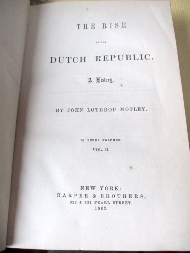 ENLARGED PICTURES!! Please scroll ALL the way down to view LARGER images. CR 121. The Rise of the Dutch Republic, A History. Volumes 1 and 2 only, lacks volume 3. Pub. Harper & Brothers, New York. 1863. Octavo. 579 pages. 582 pages. 3/4 Tan leather, marbled boards, and edge and end papers. Books, clean with slight wear. Near Fine condition. Please do not hesitate to e-mail with any questions. As Always, Satisfaction Guaranteed! PAYMENT: PayPal, because eBay requires sellers to list electronic payments exclusively. I expect to receive payment within 10 days, unless we have made other arrangements. MEDIA MAIL: The majority of my books are sent Media Mail to U.S. customers. I add $1.00 for shipping materials, etc. (The shipping price that you see at the top of the page includes the handling fee.) PRIORITY MAIL: I will send both Media cost and Priority cost with invoice, on books which seem to warrant Priority service or when buyer requests it. I'm glad to combine multiple purchases in order to minimize shipping costs. I WILL SHIP INTERNATIONALLY, and I try to be as economical as possible with the shipping costs. Whenever a book will fit comfortably in a Priority Flat Rate Envelope, I'll send it that way. RETURN POLICY: Satisfaction Guaranteed! Payment I accept the following forms of payment: PayPal Shipping & Handling I'm glad to combine multiple purchases for less expensive shipping costs. US Shipping Please check eBay's Shipping & Payment tab USPS Media Mail® International Shipping Please check eBay's Shipping & Payment tab USPS Priority Mail International FREE scheduling, supersized images and templates. Get Vendio Sales Manager. FREE scheduling, supersized images and templates. Get Vendio Sales Manager. Over 100,000,000 served. Get FREE counters from Vendio today!