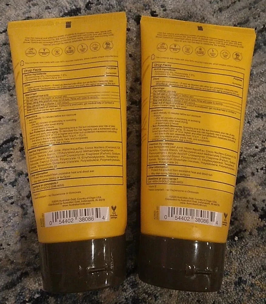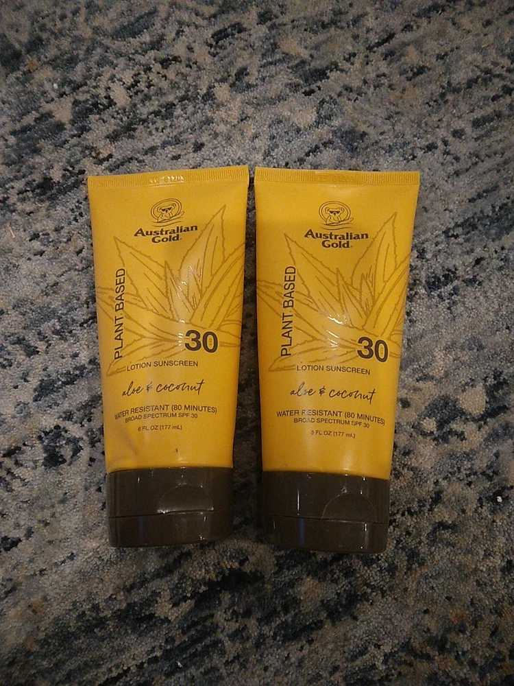 2 X Australian Gold Aloe & Coconut Lotion Sunscreen 6oz Each SPF 30 Plant Based.