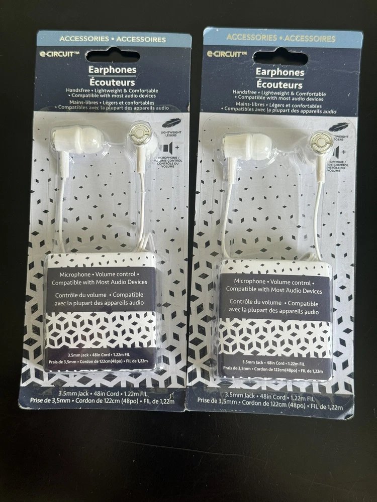 2 X E Circuit Earbuds w/Microphone Earphones 3.5mm JACK 48" Cord 1.22m White