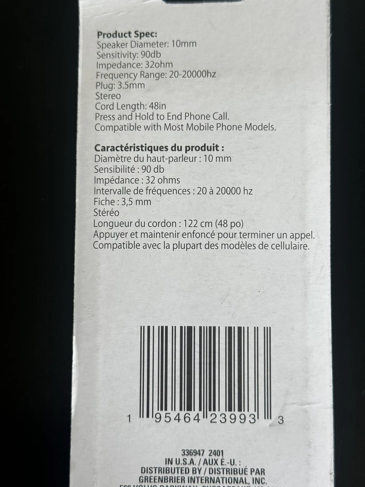 Connectors:3.5 mm (1/8 in)Microphone Type:Built-InForm Factor:In-Ear OnlyModel:HANDSFREEgtin13:639277981134Year Manufactured:2000sSuitable For:AudioType:Earbud (In Ear)Driver Size:N/ABand:N/APersonalize:NoCountry/Region of Manufacture:CanadaNumber of Earpieces:DoubleEarpiece Design:Earbud (In Ear)Impedance:UnknownUPC:639277981134Features:Built-in Microphone, Call functions, Microphone, 3.5 MM JACK, NEW UnopenedColor:Black, WhiteManufacturer Warranty:N/AYear of Manufacture:2010sBrand:E-CircuitWireless Technology:WIREDCable Length:1.22 mConnectivity:3.5mm Jack