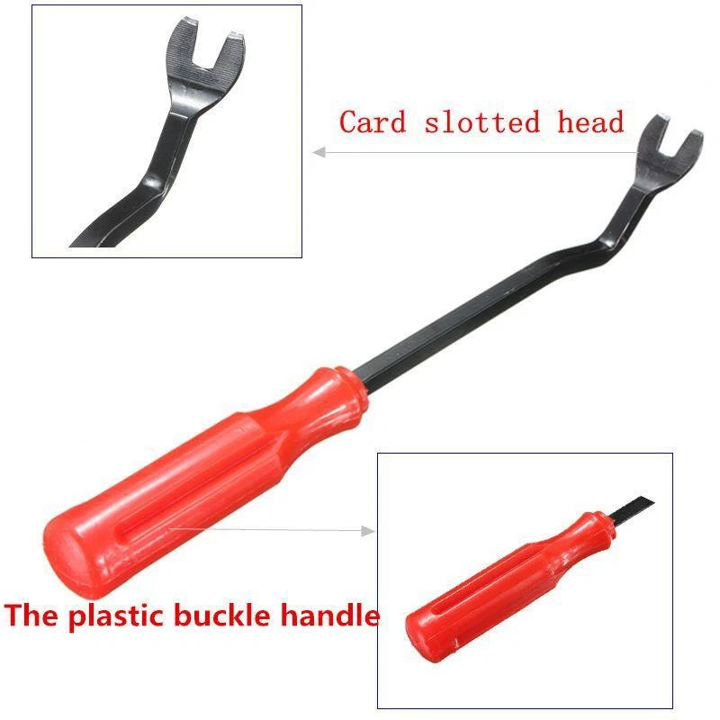Description These tools allow you to quickly and easily remove car door panel and upholstery clips without causing damage to them. These car door panel and trim clip removal pliers are designed for the quick removal of staples, clips, door panels, facia and trim supports etc. without damage. The jaw design allows clip removal simply by squeezing the handles and the wide nose is designed to prevent breaking or tearing panels when undoing facings. Specifications Color: Black + Red Material: Plastic + Iron Size: 65 x 38 x 5cm Upholstery Remover Length: Approx. 21.6cm Removal Pliers Length: Approx. 23cm Package Included 1 x Door Removal Tool 1 x Clip Removal Pliers eBay Cross Border Trade powered by ChannelEffect