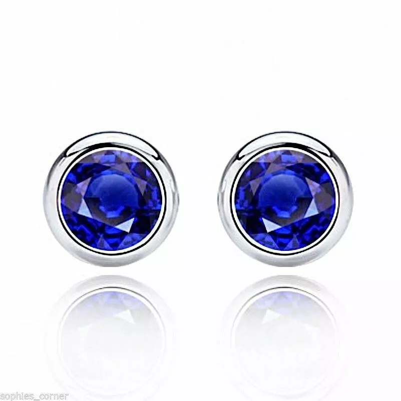 Stunning Bezel Set Sapphire Stud Earrings Bezel set in solid sterling silver. 2 ct. 6mm stone - 7mm with bezel. Gift box included. All Sterling Silver in this piece is Rhodium plated and will never turn color. Listing and template services provided by inkFrog Shipping We ship next day. All items purchased on Friday will ship Monday (unless a holiday). Items can take longer than (Ebay time frame is generous). You can upgrade to Priority Ship (2-3 day delivery). Returns We have a 30 day no questions asked return policy. No RMA needed. All items and parts must be returned including packaging (gift box). Please include your user name and item number. We reserve the right to include a restocking fee. No upgraded shipping will be refunded.