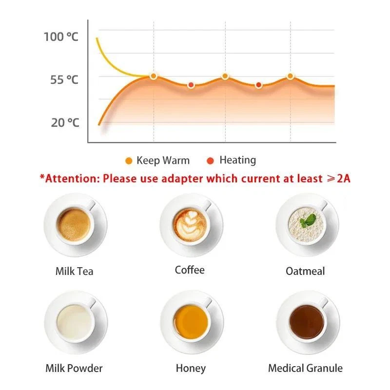 2 in 1 Coffee Cup Warmer Automatic Magnetic Stirring Mug for Home Office USB · ãKeep Beverages Warmã -The cup warmer mainly keep your coffee, water, milk, tea, and other beverages at the perfect temperature for a long time, wherever and whenever, you can enjoy your favorite drinks at the perfect but not-too-hot temperature. · ãBest Gift Choiceã -Beautiful and compact design, keep your beverages always warm, It will be your best gift choice to show your care to your families, lover or friends on Valentine's day, Thanksgiving, Christmas or other special occasions to show your cares. ãAttentionã 1. This is the cup warmer only, not the electric kettle, it can not boil the water, it mainly slow down the cooling speed of hot water, keep warm for the whole day. 2. If you want to heat the cool water, you may have to wait for 15-30 minutes, or even longer, the max temperature will be 50-55â, the longer you wait, the closer you will get to 55â. The heating speed depends water capacity 3. The product doesn't include the adpater, p lease use your phone adapter or other USB sockets, and make sure the adapter output power â¥2A, or it can not get enough power and the heating will be slow and weak. Shipping Fast Shipping Worldwide Returns We accept returns 30 days from the package received. Payments All payments are accepted via PayPal.
