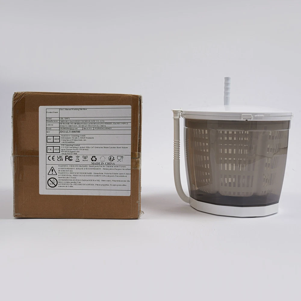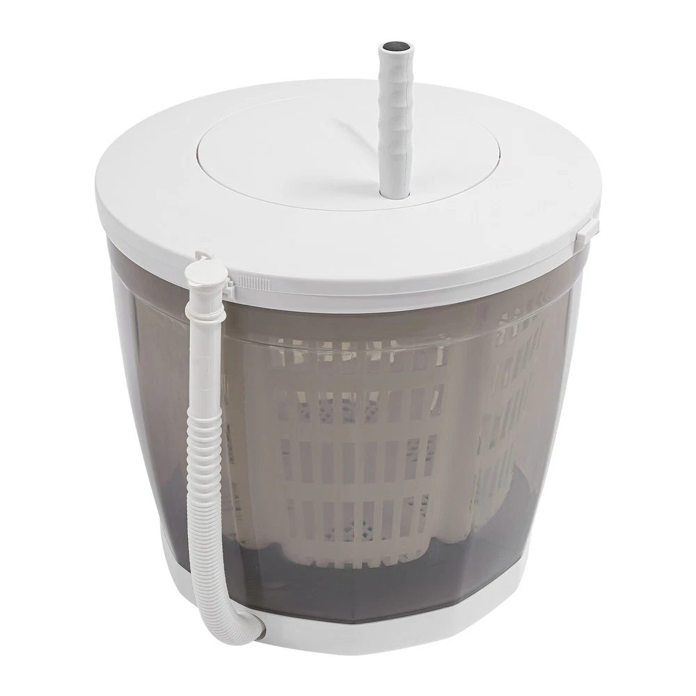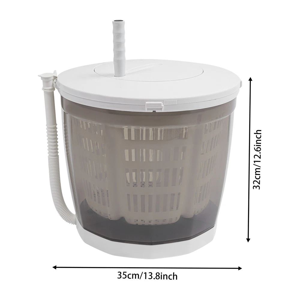 Key Features Premium Material: Made of high-class plastic, this product is of high strength, non-toxic, eco-friendly, wear-resistant, and not easy to damage for long-term use. Dual Use: This product is not only a manual washing machine, but also a spin dryer. One product with two functions, it is very cost-effective, saving space occupied by multiple machines. Eco-friendly: It doesn't need to be plugged in, you just need to rotate the handle to operate it, using only a fraction of water and detergent to clean clothes. Compared with electric washing machines, it saves electricity. Embrace a Healthier Life: It can be the second washing machine at home for washing close-fitting clothes separately to avoid cross-infection. Considerate Design: The carefully designed handle allows you to ea 2 in 1 Manual Mini Portable Washing Machine Compact Washer Clothes Spin Dryer Description Our mini manual washing machine uses premium material for long-term use. With suction cup feet for stability and an alignment-free lid for convenience, it is easy to use. It has the functions of dehydration and washing, very practical. Thanks to the compact size and lightweight, it is easy to carry, and ideal for both daily home use and travel. Key Features Premium Material: Made of high-class plastic, this product is of high strength, non-toxic, eco-friendly, wear-resistant, and not easy to damage for long-term use. Dual Use: This product is not only a manual washing machine, but also a spin dryer. One product with two functions, it is very cost-effective, saving space occupied by multiple machines. Eco-friendly: It doesn't need to be plugged in, you just need to rotate the handle to operate it, using only a fraction of water and detergent to clean clothes. Compared with electric washing machines, it saves electricity. Embrace a Healthier Life: It can be the second washing machine at home for washing close-fitting clothes separately to avoid cross-infection. Considerate Design: The carefully designed handle allows you to easily and effortlessly rotate, quickly completing cleaning tasks. Moreover, it can be folded by lifting it up, saving you more storage space. Highly Portable: The lightweight (5.56 lbs) and compact (13.8*12.6in) make it easy to carry, making it also suitable for travel and camping. Easy to Clean: With a smooth surface, simple structure, and detachable dehydration basket, it is easy to clean, saving effort and time and avoiding secondary pollution of clothing. Stylish Appearance: The elegant color paired with smooth lines, stylish yet classic, easily blending into various home styles, adding a touch of sophistication and taste to your home life. Details Alignment-free Lid: The lid can be closed at any angle by rotating clockwise to close the lid and counterclockwise to open it, which is convenient. Suction Cups: Four suction cups enhance stability during spinning, minimizing vibration. Application This product is suitable only for small items like underwear, socks, towels, diapers, baby clothes, and delicate such as woolens, silks, and knitted dresses. It is ideal when you only have a few items to wash and it can be used in RVs, camping, apartments, and dorms. You also use it to wash vegetables. How to Use Step 1: Place the machine on a flat countertop and open its lid. Step 2: Put in your laundry, and detergent, and add the appropriate amount of water. Step 3: Close the lid and open the handle. Step 4: Hold the handle and rotate it to start the cleaning job Step 5: When the washing is finished, put the drainpipe down and pull out the plug to drain. Step 6: Open the lid, lay the clothes flat, then close the lid and rotate the handle to drain the water. Specifications Style: Modern Shape: Round Color: Grey Material: Plastic Mounting Type: Freestanding, Tabletop Assembly Required: Yes Operation Mode: Manual Washing Capacity: 2kg/4.4lbs Dehydration Rate: 40-50% Product Size(D*H): 35*32cm/13.8*12.6in Package Size: 37.5*35*36cm/14.76*13.78*14.17in Gross Weight: 2.65kg/5.84 lbs Net Weight: 2.52kg/5.56 lbs Package Included 1* Mini Manual Washing Machine 1* English Manual Notes Please check the product size before ordering to make sure it fits your needs. This product holds up to 3.17gal of water. Please note that this product is not suitable for bulky or winter clothing (jeans, jackets, bedsheets, quilt covers). Please note that due to the high-speed dehydration, this product will have a slight shaking, which is a normal phenomenon. If the shaking is too big, please loosen the handle, and hold the product steady with both hands, when the basket inside stops rotating, put the clothes evenly, and then cover the lid for dehydration. Please note that when moving the product, please do not force upward to lift the product, so as not to damage the foot pad, the product will be moved flat out of the table. Please allow the slight color difference caused by the shooting light and 1-3cm error due to manual measurement, and make sure you do not mind before you order. Payment Delivery details Terms of sales About us Contact us Payment We accept ebay payment 。 Fees such as import duties, taxes are not included in the item price or shipping costs. These charges are the buyer's responsibility. Delivery details Shipping: 2-9 working days to: USA Terms of sales We maintain high standards of excellence and strive for hundred percent customer satisfaction. Feedback is very important to us. We hope that you contact us immediately before you give neutral or negative feedback, so that we can address your concerns. It is impossible to address issues if we do not know about them! About us Your satis faction is our ultimate goal. We work hard to earn your trust and future business. Our certified technicians have tested each item before shipping. The unit comes with 1 year limited warranty on all manufacturing defects. a) If you receive a defective item, you may return it or ask for a discount. Please contact us within 14 days aft