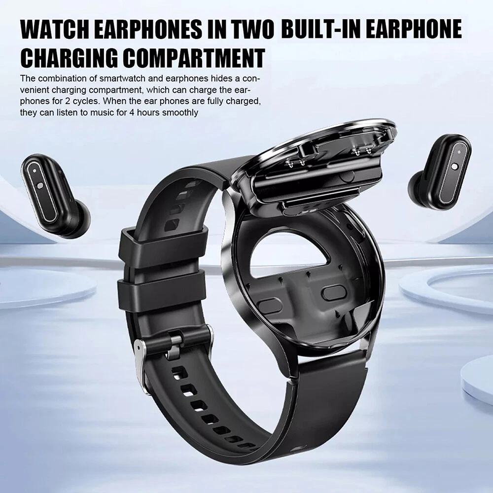 Picture Gallery Description Features: 1. Two in one new design: Smartwatch paired with TWS Bluetooth earphones, perfect combination of smartwatch and Bluetooth earphones. All metal steel dial, full of high-tech feel. 2. Large screen smartwatch: Equipped with a 1.39-inch large screen, super Retina high-definition display, 360 * 360 high-definition resolution, the smartwatch has higher color saturation and finer and clearer picture quality. You can use 10+watch dials and define your own theme. 3. Multi functional watch: Bluetooth calling, full touch, heart rate, shake and take photos, call reminder/reject, information storage, multi sport modes, weather, built-in NFC function make this watch a smart lock key for your home or office, so you no longer have to worry about forgetting your key when going out. 4. Main functions: Real-time vibration reminder, information reminder, alarm clock, finding wristbands, health monitoring, exercise recording (pedometer, calories, mileage), time, week, date. 5. Make/receive phone calls and support notifications: After connecting to Bluetooth, you can directly dial the phone number on the screen to answer the call. When your smartphone receives calls and messages (such as SMS, Skype, Facebook, Twitter, WhatsApp, Line, Viber), it pushes them to the TWS earbud watch. Make our lives more convenient and intelligent. 6. The application supports 26 languages: English, Simplified Chinese, Traditional Chinese, German, French, Arabic, Czech, Greek, Spanish, Japanese, Persian, Italian, Korean, Dutch, Polish, Portuguese, Russian, Finnish, Swedish, Thai, Hungarian, Slovak, Croatian, Albanian, Turkish, Ukrainian, Hindi 7. Watch language support: English, German, French, Arabic, Czech, Greek, Spanish, Persian, Italian, Dutch, Polish, Russian, Finnish, Swedish, Thai, Hungarian, Slovak, Croatian, Albanian, Turkish, Ukrainian, Hindi 22 languages. The function of the headphone button: 1. Press the button 4 times before pairing ----- switch between Chinese and English prompts 2. Press and hold for 2 seconds to turn on the device, press and hold for 1.5 seconds to reject calls, and press and hold for 3 seconds to turn off the device 3. Double click button ----- Answer/End call 4. 4 Click button ----- Wake up SIRI compatible 5. Double click button ----- Play/Pause 6. Three clicks on the left ear button: Previous track; Three clicks on the right ear button: Next track) 7. Restore headphones to factory settings: Press and hold the headphones for 8 seconds while they are turned off. (If the two ears cannot be paired, they can be restored to factory and re paired) Reminder: Heart rate, blood oxygen, and blood pressure are only reference values and cannot be used for medical purposes!!! Specifications: Product Name: Smart Watch Main control chip: 8762D Screen size: 1.39 inches Resolution: 360 * 360 Bluetooth version: 5.0 Waterproof grade: IP67 Standby time: 8-12 days Music duration: 4 hours Battery life: 3-5 days (depending on personal usage) Charging time: 1 hour (earphones) Charging time: 1.5 hours (watch) Charging method: Magnetic charging Earphone battery capacity: 25mAh Watch/Charging Cabin Battery Capacity: 240mAh Charging case function: can charge headphones 2-3 times Control method: Full screen touch+button press Application: FitCloudPro Compatible system: Android 4.4 and above; Compatible with iOS 8.0 and above versions Watch memory: 192KB RAM+1024KB ROM+128MB UI Flash Case Material: Glass Lens+Zinc Aluminum Alloy Strap material: silicone/steel strap (optional) Package List: 1 * 2-in-1 smartwatch 1 * User Manual 1 * Screen protector film 1 * USB magnetic charging cable Note: Due to manual measurement, please allow for an error of 1-3cm. Before bidding, please make sure you don't mind! Due to differences in monitors, images may not reflect the actual color of the product. thank you! Shipping Policy Payment Policy Return Policy Shipping Policy 1. We only ship to confirmed PayPal addresses. 2. Economy Shipping, with no tracking number. Standard Shipping, with tracking number. Express (Expedited) Shipping, with tracking number. 3. Economy shipping needs 2-5 weeks to arrive mostly. In rare case, it can take up to 6-8 weeks. It depends on your location and local postal service, as well as the weather condition along the shipping. 4. If you need a faster delivery time, you could choose Express (Expedited) Shipping. If you need a tracking number, you could choose Standard Shipping. Payment Policy We accept PayPal only. We only ship item to your PayPal verified address. Please pay attention that import duties, taxes and charges are not included in the item price or shipping charges. These charges are the buyer's responsibility. Please check with your country's customs office to determine what these additional costs will be prior to bidding/buying. Return Policy 1. We offer 60 day money back or replacement guarantee. In addition, it allows customers to return new and unused products in their original factory condition for any reason within 60 days from the date of purchase. 2. Although we test each item and they are packed professionally, few item (less than 0.1%) might be damaged during the shipping. Please feel free to contact us within 4 days after you receive your package about replacement. 3. If you don't receive items over 35 days, please make sure to contact us before leaving any neutral or negative feedback. We'll try our best to help you solve the problem. If we authorized the return, customers will get an email with instructions for returning the item. Email will be replied within 24 hours on Chinese business hours. On Feb 6, 2025 at 23:08:53 PST, seller added the following information: