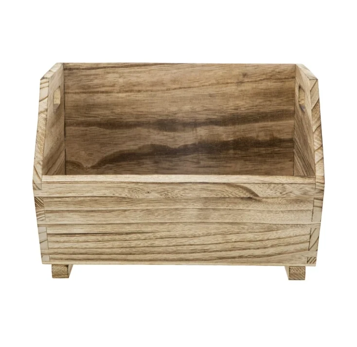 (2 pack) Better Homes & Gardens Adult Natural Wood Stacking Storage Bin Set About this item Product details The Better Homes & Gardens Natural Wood Stacking Bin Set, 2-Piece allows you to tidy up your space in an attractive manner. These bins measure 11.02" L x 10" W x 8.27" H, and are sized to ideally be placed on a shelf, tabletop, or even the floor. You can stack them on top of one another to help conserve space or display them individually. Crafted of sturdy wood materials, these baskets are a great option for storing toiletries, cleaning supplies, remotes, small electronics, books, and much more. These lovely baskets are designed with two reliable cut-out handles to easily carry and move your stored items. The Better Homes & Gardens Natural Wood Stacking Bin Set, 2-Piece is perfect for bringing more organization and order to any space. The versatile natural tone beautifully complements a wide variety of home décor styles. This item can also be stained for a DIY project. Includes two stackable baskets Cut-out handles for easy transport Durable wood construction Versatile natural tone Can be stained for DIY projects