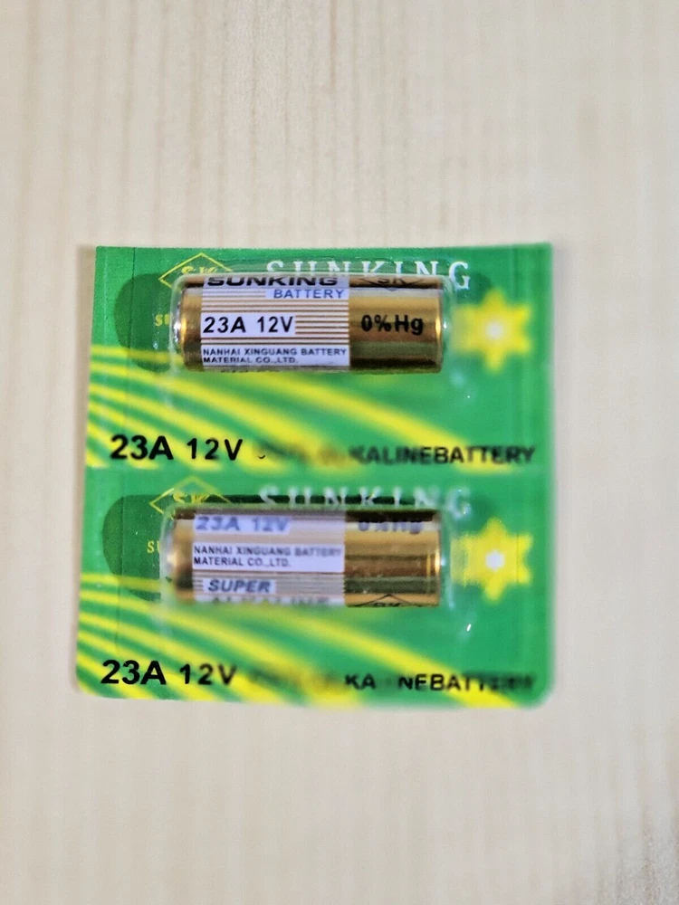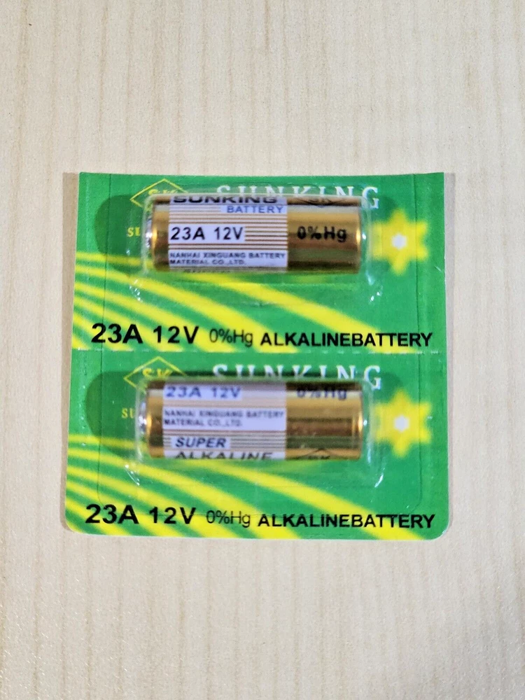 This is for 2 new Sunking 23A 12-volt super alkaline batteries. Applications: Doorbell, Garage door openers/sensor, home security systems, Remote control, lighters, electronic door locks, and automotive keychain remotes, radio devices, keyless vehicle entry systems, and Bluetooth headsets. Equivalent to the: MN21, V23GA, A23, 1811A, 3LR50, LR-V08, SES-23A, MS21, VR22, EL12, GP-23A, 8LR23, ANSI-1181A, 8F10R, 8LR23, 8LR932, 23A Should you want faster shipping with tracking, USPS ground advantage is available for $4.50. We do not make anything on this optional service.