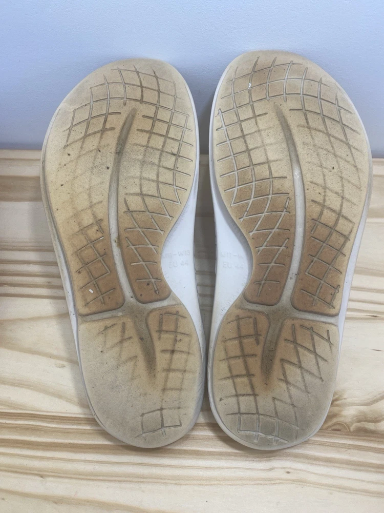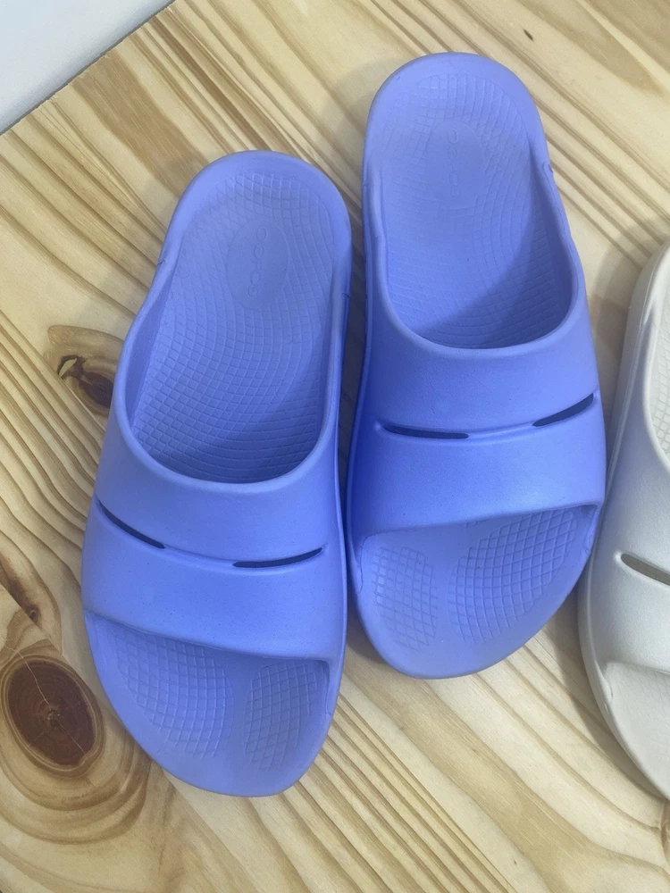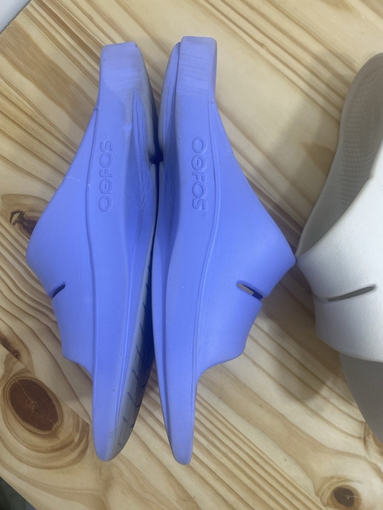 You get both pairs! Both are preowned, size men’s 11 / women’s 13 One pair is beige/off white the other is light purple The purple pair has a spot where a thorn was removed from the bottom and they have small cuts and scratches from light use but it does not affect look, feel or function. They are VERY comfy slides!