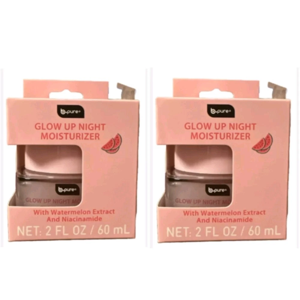 2 x B Pure Glow Up Night Moisturizer With Watermelon 2fl Oz BNIB ☆B Pure Glow Up Night Moisturizer 2fl oz BNIB •With Watermelon extract and hyaluronic acid • This replenishing moisturizer is enriched with fruit and Niacinamide to strengthen & and improve the natural barrier of the skin. • Improves skin texture & gives your complexion a boost of radiance. • SKIN CONCERN - Works Best for Dry Skin, Balanced Skin, Sensitive Skin & Combination Skin. • Solutions for dryness, irritation, fine lines & wrinkles , and uneven texture. • Niacinamide strengthens the skin’s lipid barrier and improves skin texture BNIB #bpure #glowupnightmoisturizer #moisturizer #hydrating #watermelon #niacinamide #glowrecipe