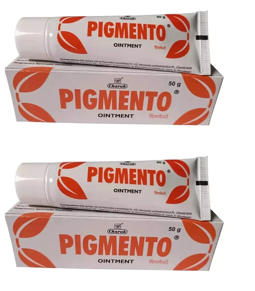Charak Pigmento Ointment the main ingredient Psoralea corylifolia stimulates melanocytes to synthesize melanin, the pigmenting agent. It helps in treating Vitiligo, which refers to a long-term skin condition characterized by patches of the skin losing their pigment. It is also used to treat acquired white patches. Key Ingredients: Psoralea corylifolia Acorus calamus Cassia tora Melia azadirachta