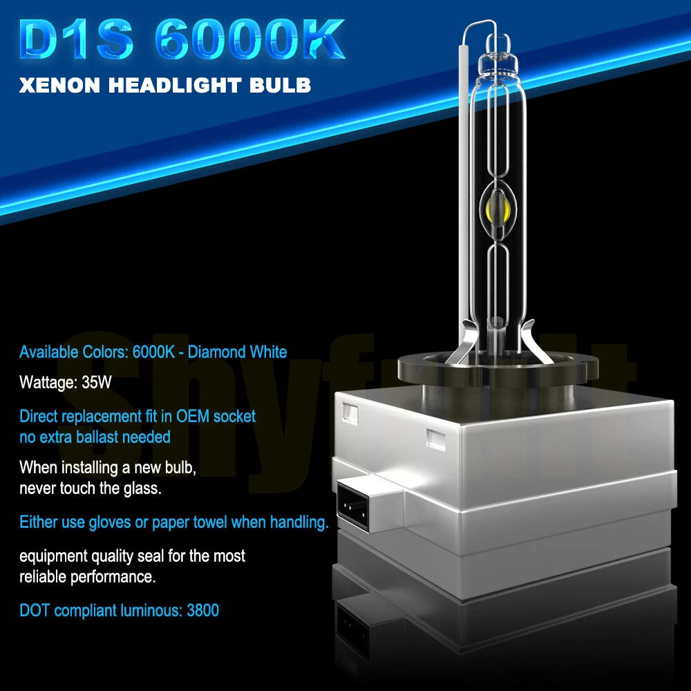 Note: wholesale!!! Products can be wholesale!!! If you have any needs, please send us a message to contact us. Information: a)Compatible List can not show up all Car model. Please check the Correct item size of your vechicle. it will work and fit.Thank you! b)If you are unsure the item fit or not , please do remember send message to tell us your car make, model, year and other information which is helpful to check the item fit or not. For example: For 2004 Ford F 150, high/low beam For 2015 RAM 1500 with projector-type, high beam For 2019 Ford F 150 ,XL Crew Cab Pickup 4-Door 2.7L Specification: Low power consumption and long lifespan Waterproof and dustproof HID Simple to install With enhanced durability and shock resistance You can see more clearly when driving at night Enhance driving safety Color temperature:6000K-6500K Light Color: White Power: 35W/pcs Type: D1S Operating Voltage: 9-32VDC Waterproof Rate: IP 68 Iuminous Flux: 3800LM/pcs Life span: 50000 hours Body Color:Silver Working Temperature: -40℃ - +80℃ Compatibility: Car, motorcycle, electric motor car Package Includes 2pcs 35W HID Xenon Light Bulbs New and old packaging will be shipped randomly Xenon light is a real highlight for all drivers looking for high performance and stylish design packed with special features and innovative technology. In addition to many other benefits, xenon technology achieves excellent road illumination as well as individual light design. Feedback As we are honest seller,we live on feedback ,so your positive feedback and 5-star DSRs means a lot to us. We would very much appreciate it if you would leave us a 5-star positive feedback. After service Notification: If you are satisfied with our product and service please leave us a positive feedback,if there is any problem when you received the package,please feel free to contact us,we will be definitely give you a satisfying solution,when you choose the return reason .please choose the reason"i don't like it". by this option we will accept your return immediately and provide return label for full refund. the others reason to return will take both of us many troubles to handle.