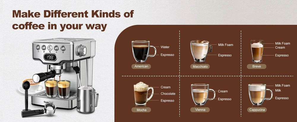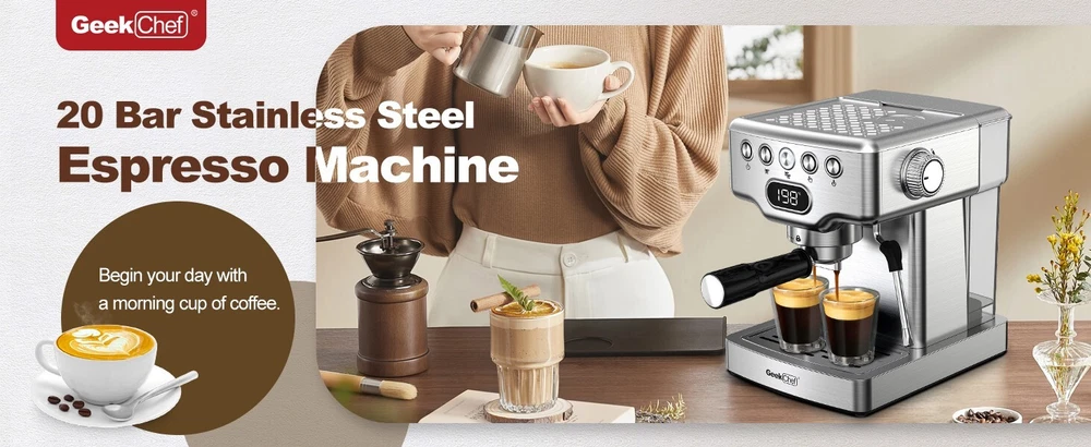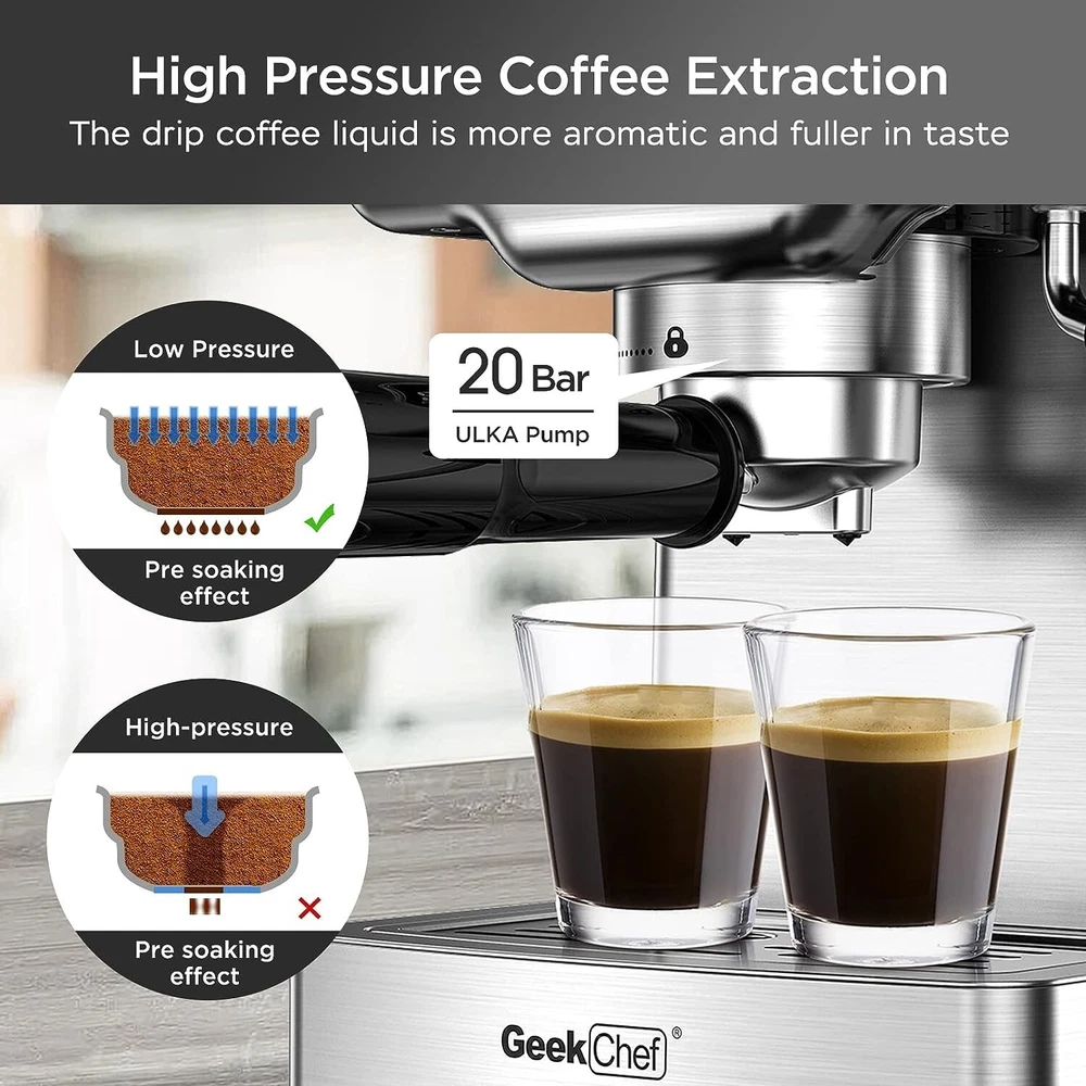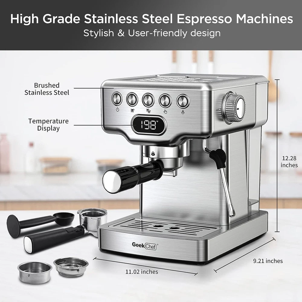 20 Bar Pump, Milk Steamer, Quick PreheatProfessional Espresso Machine