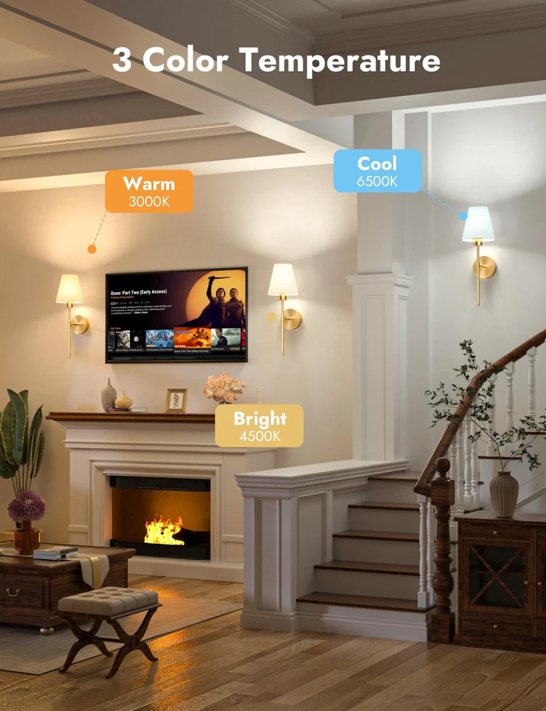20'' Battery Operated Wall Sconces Set of Two, Wireless Wall Sconces with Remote and Bulbs, 9 Colors Battery Powered Wall Lights, Rechargeable Wall Lamps for Bedroom Living Room(Gold) 【Wireless & Easy to Install】wireless sconces set of 2 are battery - powered, coming with two rechargeable 5200mAH LED bulb. Wall sconces set of two battery operated eliminating the hassle of wiring within the walls, conveniently for users who don't want to damage the wall surface and those without pre - installed electrical wiring, or renters. Sconces wall lighting battery operated are suitable for bedroom, living room, hallway, bathroom, kitchen, and stairway etc, creating an elegant and stylish atmosphere for your indoor space. 【9 Lighting Colors】Our battery powered sconces set of 2 offers diverse lighting options. It has three color temperatures: 3000K creates a cozy and inviting atmosphere, 4000K provides a clear and natural illumination, and 6000K is bright and energetic. There are also six RGB colors to switch between. Whether for a party or daily use, you can easily customize the lighting to suit different moods and occasions. With the gold sconces wall decor set of 2, creating the perfect lighting environment is a breeze. 【Dimmable & Energy Saving】300 Lumen/5200 mAH. The battery powered wall sconce offers four brightness levels: 25%, 50%, 75%, and 100%. Customize the light according to your needs and desired atmosphere. Whether for a relaxing night or tasks, switch between settings easily. The working time of the gold wall lights battery operated depend on brightness. It lasts 72 hours at the lowest brightness and 25 hours at the highest. 【Timer and Memory Function】You can easily set a timer for wall lamps battery operated to automatically turn off after 1 to 8 hours. This helps extend the battery life and reduces unnecessary power consumption. Even better, when you turn off and then turn on this rechargeable wall sconces set of 2 again, it will remember the color and brightness settings you last used, eliminating the hassle of re - configuration. 【100% Satisfaction Service】: We proudly stand behind all of our products 100% and offer a full 2-year service for our rechargeable wall lights. This will cover you if the wireless lights for wall indoor stop working or there are any defects within those 2 years. 【100% Satisfaction Service】We proudly stand behind all of our products 100% and offer a full 2-years service for our wall sconces. This will cover you if the gold wall lights stop working or there are any defects within those 2 years.
