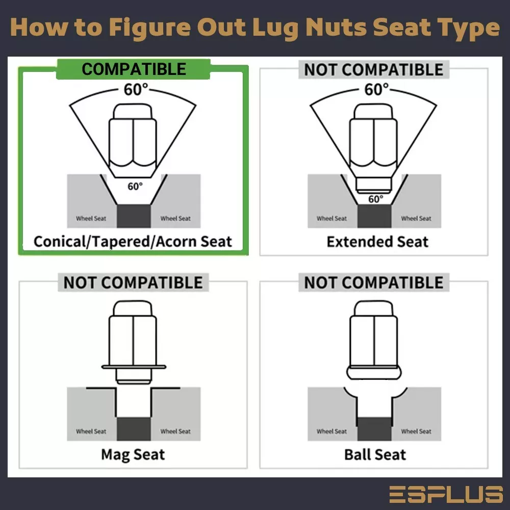 Store Home | Hot Products | Hot Deals | Suscribe for More | Customer Feedbacks | Contact us Categories Universal Lug Nuts OEM Lug Nuts Wheel Locks Conical Seat Lug Bolts Ball Seat Lug Bolts Hub Centric Spacers 4 Lug Wheel Adapters 5 Lug Wheel Adapters 6 Lug Wheel Adapters 8 Lug Wheel Adapters Studs Conversional Adapter 5 Lug HubCentric Adapter 6 Lug HubCentric Adapter Universal Wheel Spacers M14x1.5 OEM Wheel Lock Nut Set / Conical Seat 60 Degree / 30mm Flange / 1.58" Tall Specifications Quantity: Set of 16 Lut Nut+4 Wheel Lock + Key Thread Pitch: 14x1.5 Lug Nut Height: 1.58" (40 mm) Lug Nuts Flange: 1.19" (30mm) Seat : 60 Degree Conical Seat Material: 10.9 Grade SCM Heat Treated Steel Color and Finish: Black Drive: Lock Tool Requirement: 3/4"(19mm)/ 13/16" (21mm) Hex Socket Package 16 Pcs Lug Nuts 4 Pcs Wheel Locks + Socket Important Notice For stock wheel users, we suggest to use shape of existing lug nuts' Flange , Seat Type , and Height as refernce before buying. Compatibility chart from Ebay is only designated for Thread Pitch check. The actual fitment varies based on the requirements of wheels. Lug nuts/bolts seat has to strictly follow the wheel condition. If you are not sure, please do not hesitate to ask customer service. Our Return Policy If ever you’re not satisfied with your purchase, we offer 30-day return. Returned product must be intact and unused as the same condition of the original shape and package. Upon return, please contact the customer service for Return Merchandise Authorization (RMA) number prior to returning. A 25% restocking fee will be charged for all non-defective products. All refunds will be credited back to the original payment method. About US We strike to provide high quality auto parts. Your satisfaction is our first priority. Should you have any questions, please do not hesitate to contact our customer service for help. Limitation of Liability In no event shall our liability exceed the value of the product(s) sold. In no event shall our company be liable for any direct, indirect, punitive, incidental, special or consequential damages whatsoever arising out of or connected with the use or misuse of any of its products. Fitment Following chart is designated for Thread Pitch check only. Due to aging, your studs may have been changed. Please compare the shape and thread mark with your existing lug nut before buying. Q & A How do I know If this product will fit my car? 1. Use compatibility chart to check Make/Model/Year 2. Check wheel studs are factory default 3. Check wheel studs are less than 1.58” Long 4. Check wheel lug mating surface is 60 Degree Conical Seat 5. Check wheel lug hole flange requirement is 30mm *You can also use existing lug nuts thread/shape as reference Why is the product bottomed out without seat firmly? Your studs are too long to penetrate the max length allowance for the lug nuts Solution: 1. You need longer and deeper lug nuts 2. You need to trim the studs and make it shorter Why is the product too thin that won’t hold my wheel? Your wheel requires large flange lug nuts to hold, for ideal flange size, please refer to your existing lug nuts Solution: 1. You need large flange lug nuts 2. You need to use lug nuts flange adapter to make it fit Why does the product not fit my wheel cap? Most of the wheel caps have clipers that require lug nuts to hold,our lug nuts may not have the same shape to match the clippers Solution: 1. You need to purchase the exactly same lug nuts from the caps 2. You need to remove your wheel caps Why is the thread not matching my wheel studs, but my car is listed in the compatibility chart? Wheel Studs are subjected to be replaced due to aging or repair, after that, you may have different thread than factory default Solution: 1. Check the thread from your existing lug nuts 2. The thread mark is ususally engraved on the side of lug nuts Why does my lug nuts have different mating seat type than the product I purchased? Seat type of mating surface is based on the wheels, different wheels have different mating surface requirements. Some stock wheels may require special mating surface assembling. Solution: 1. Check the matting surface from your existing lug nuts and that from your wheels 2. Alloy stock wheels, steel stock wheels, and aftermarket wheels have different mating specification What is the cut-off time for same day shipping? Cut-off time for shipping is 9:30 am PST every business day excluding weekends and ferderal holidays, The shipping date for weekends and federal holidays moves to next available week days How do I get expeditate shipping for timely purposes? Expeditate shipping is based on delivering address, in rear cases, carrier may experience delay due to operational difficulties. Solution: Contact customer service before placing expediate orders Not receiving my package but tracking says delivered Package may be lost, missent, placed in porch or mail box Solution: 1. Check if shipping address on file is up to date 2. Check surroudings including porch, mail box, door steps etc. 3. File item not receive case to ebay, carrier, customer service How does international order shipping work via eBay Global Shipping Program, and how do I check status? ebay Global Shipping Program (GSP) is eBay hosted international carrier who processes international orders, sellers send product to domestic GSP center for further international transition. Solution: 1. Check with ebay GSP department directly by calling them 2. Check package tracking information tab, there are two parts of shipping, one from seller to GSP center, the other for GSP center to destination How do I change address, cancel, or modify my order after I replaced my order? All the changes and mofications must be requested before shipping via direct on-site messages, once the package tracking is given, you will not be able to make any changes Solution: Contact customer service via on-site messages, not buyer notes How do I handle wrong item sent,