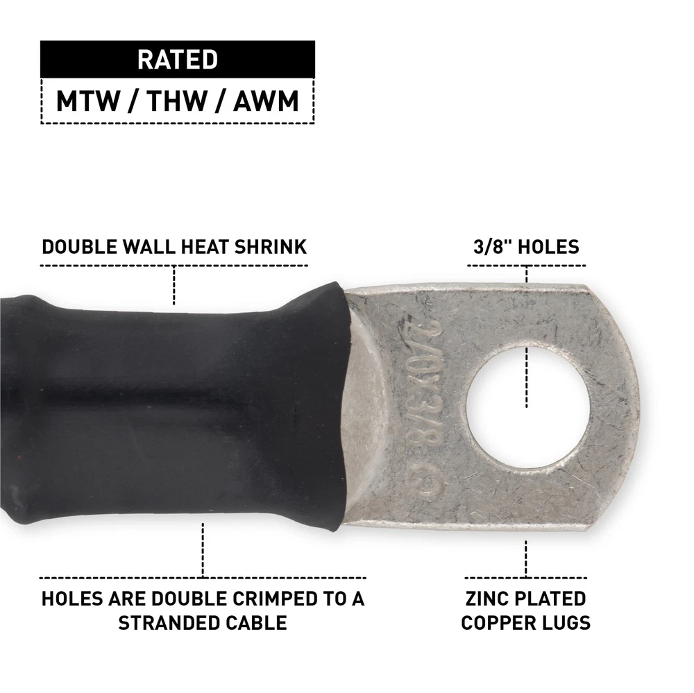 2/0 Black Battery Interconnect Cable - 8 InchesWhy use larger cable? Very high current flows in the cables that connect an inverter to the batteries, even in a Low-Voltage power system. Household appliances can draw over 100 amps, and motors may draw up to 500 amps. Larger cables allow the inverter to draw the current needed to support a large load.Use these cables between individual battery cells or between battery banks. Use 2/0 cables for 175-amp and 200-amp fuses. Circuits protected by 250-amp breakers or 400-amp fuses should use 4/0 cables. Cables are marked in red heat-shrink tubing for positive and white on black heat-shrink for negative.Features of the 8" CablePlated Copper Lugs: These UL-listed lugs are Powered by Frooition Store Home About Us Contact CLEARANCE Alkaline Batteries Assembly Cells Solar Light Batteries Baby Monitor Batteries Barcode Scanner Batteries Battery Chargers Cell Phone Batteries Coin Cells Components Dog Collar Batteries Electric Toothbrush Batteries Emergency Lighting / Exit Sign Flashlight Batteries Flooded Lead Acid FRS / 2-Way Radio Batteries Hearing Aid Batteries Hotel Door Lock Batteries Industrial / Communication Lithium Iron Phosphate LiFePO4 Lithium Thionyl Chloride Photo Lithium Batteries Photographic Batteries PLC / Computer Backup Razor Batteries Rechargeable Batteries Car Alarm / Key FOB Batteries Sealed Lead Acid Vacuum Batteries Watch / Button Cells Interconnecting Cables Outdoor Gear / Accessories FINAL CLEARANCE Battery Kits / Combos Medical Batteries Solar / Off-Grid Power Shop Categories CLEARANCE Alkaline Batteries Assembly Cells Solar Light Batteries Baby Monitor Batteries Barcode Scanner Batteries Battery Chargers Cell Phone Batteries Coin Cells Components Dog Collar Batteries Electric Toothbrush Batteries Emergency Lighting / Exit Sign Flashlight Batteries Flooded Lead Acid FRS / 2-Way Radio Batteries Hearing Aid Batteries Hotel Door Lock Batteries Industrial / Communication Lithium Iron Phosphate LiFePO4 Lithium Thionyl Chloride Photo Lithium Batteries Photographic Batteries PLC / Computer Backup Razor Batteries Rechargeable Batteries Car Alarm / Key FOB Batteries Sealed Lead Acid Vacuum Batteries Watch / Button Cells Interconnecting Cables Outdoor Gear / Accessories FINAL CLEARANCE Battery Kits / Combos Medical Batteries Solar / Off-Grid Power Helpful Links Add to Favorite Sellers Sign up to Newsletter View Feedback Contact Seller Visit seller's eBay Shop About Seller Page 2/0 Black Battery Interconnect Cable 8" with 3/8" Lugs Assembled in USA Item Description 2/0 Black Battery Interconnect Cable - 8 Inches Why use larger cable? Very high current flows in the cables that connect an inverter to the batteries, even in a Low-Voltage power system. Household appliances can draw over 100 amps, and motors may draw up to 500 amps. Larger cables allow the inverter to draw the current needed to support a large load. Use these cables between individual battery cells or between battery banks. Use 2/0 cables for 175-amp and 200-amp fuses. Circuits protected by 250-amp breakers or 400-amp fuses should use 4/0 cables. Cables are marked in red heat-shrink tubing for positive and white on black heat-shrink for negative. Features of the 8" Cable Plated Copper Lugs: These UL-listed lugs are made from tin-plated copper tubing with 3/8" holes, soldered or crimped to a stranded cable. Heat-Shrink Tubing: This tubing insulates the copper lugs and compression terminals. Tubing shrinks and glue inside melts when heated, sealing wires against corrosion and moisture. UL-Listed Battery Cable: This fine-stranded, very flexible cable is UL-listed for use as battery cable. It is rated MTW/THW/AWM, 60 Volt, sunlight resistant, direct burial, 105 degrees C. Available in red or black. Specifications Brand: BIAF Color: Black Length: 8" More Items! View more great items XS Power D Series 12 Volt 4000 Max Amp AGM Battery with M6 Terminal Bolt D4900 $653.95 XS Power D4800 3000 Amp 12V Group 48 Power Cell Car Audio Sealed AGM Battery $549.95 XS Power D2700 4300 Amp AGM Power Cell Car Audio Battery + Terminal Hardware $665.95 XS Power D2400 12V 4000 Watt Battery Group 24 AGM 3500 Max Amps $595.95 VIEW ALL Exell Traditional SKUs SHOP NOW VIEW ALL NiMH/NICD Assembly Cells SHOP NOW VIEW ALL Lithium Thionyl Chloride SHOP NOW VIEW ALL Coincell Batteries SHOP NOW VIEW ALL Emergency Lighting SHOP NOW VIEW ALL Flooded Lead Acid SHOP NOW About Us About Us Payment Shipping Returns Contact Us About Us About BatteriesInAFlash BatteriesInAFlash with 20 years of trusted service, is your solution for batteries and power accessories. Our vast selection covers everything from watches to automotive batteries, including batteries for equipment like golf carts, RVs, marine, motorcycles, scissor lifts, floor machines, and solar systems. We also carry batteries for PLC, Door Locks, Emergency Lighting, Slot Machines, Hospitality, and more. Our range extends beyond batteries to include battery cables, solar panels, inverters, and charge controllers. We stock top brands including Trojan, U.S. Battery, Homegrid, Saft, Omnicel, Exell Battery, Antigravity, Fullriver, Interstate, K2 Energy, and more. We are committed to providing top-notch products and excellent customer service. We carry a complete line of batteries and serve all consumer electronic, commercial, industrial, military, and government needs. Payment Payment Payment Options Paypal is the preferred method of payment. We also offer the ability to pay with a credit card through Authorize.net during checkout. All orders must be paid in full before shipping. Any orders that are not will not be shipped until payment is made. Taxes Nevada sales tax of 8.375% will apply to orders shipped to an address in the State of Nevada. Shipping Shipping Shipping & Handling We make every effort to get your order to you in a flash. In-stock items are shipped if the order is received before 1 pm PST. Please note that orders made after 1:00 PM (Pacific Stand