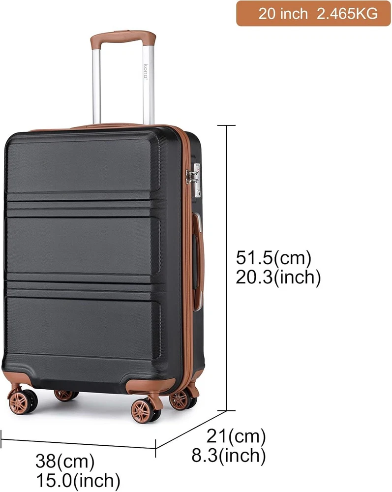 【20 INCH SPINNER LUGGAGE DIMENSIONS】Overall Dimensions: 20.3" x 15" x 8.3" (including wheels and handles). Packing Dimensions: 18.3" x 14.76" x 8". Weight: 5.5 lbs. CAPACITY: 35.7L. This international carry-on luggage maximizes your packing capacity and meets most carry-on size restrictions for both domestic and international travelers aiming to travel light. It's suitable for 3 - 5-day trips! 【TELESCOPIC HANDLE + SHORT HANDLE】The adjustable 3-level aluminum telescoping handle enables you to easily and quickly maneuver in tight spaces. It is sturdier than most telescoping handles on the market. Additionally, there are soft - sided handles. They are convenient for easy carrying when you're in a hurry. Moreover, these soft - sided handles are extremely useful when you need to lift the suitcase, especially when it's heavy. 【CARRY ON LUGGAGE WITH LOCK + WHEELS】The side-mounted TSA lock, combined with a smooth YKK zipper, serves to deter theft. This ensures that only you or a TSA agent can easily access your belongings during travel, providing added security and convenience. The multi-directional spinner wheels offer 360º effortless mobility, reducing the strain on the traveler's wrist. Additionally, the wheels have been re-engineered to be lightweight. 【PRATICAL INTERIOR FOR WELL ORGANISED】hard shell carry on luggage designed with 2 roomy fully-lined compartments. The packing straps keep your clothes in place, a zipper mesh pocket for anything you want to keep separate. Not only a perfect small luggage for yourself, but also a cute gift for your families, friends, or school children. Product Dimensions 15 x 8.3 x 20.3 inches Item Weight 5.5 pounds Department Unisex On Feb 11, 2025 at 19:09:29 PST, seller added the following information: