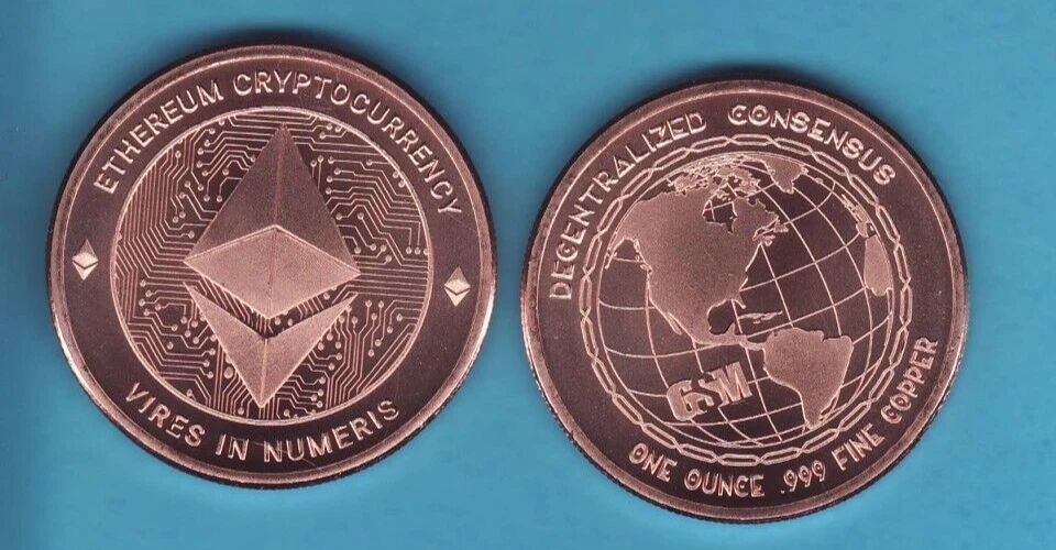 This is for 3. .20 COIN ROLLS .. .60 COINS Total. ...of 1 oz. .999 pure Copper Rounds, 20 coins of each BIT COIN, LITE COIN & "ETHEREUM" from GOLDEN STATE MINT. One of the best quality copper round mints in the world. The same mint that makes the well known Silver Shield coins. . .....These BU rolls of coppers were from a special purchase that can only be beat if you got 500+ coins direct from the mint... P&H is $9.25.......Each 20 coin roll will be shipped in the tube they came in from the mint, email with any questions, multiple coins will be shipped together to save on postage......... Now with 500+ Copper choices in the Copper Round section in my store..... THE LARGEST SELECTION ANYWHERE...