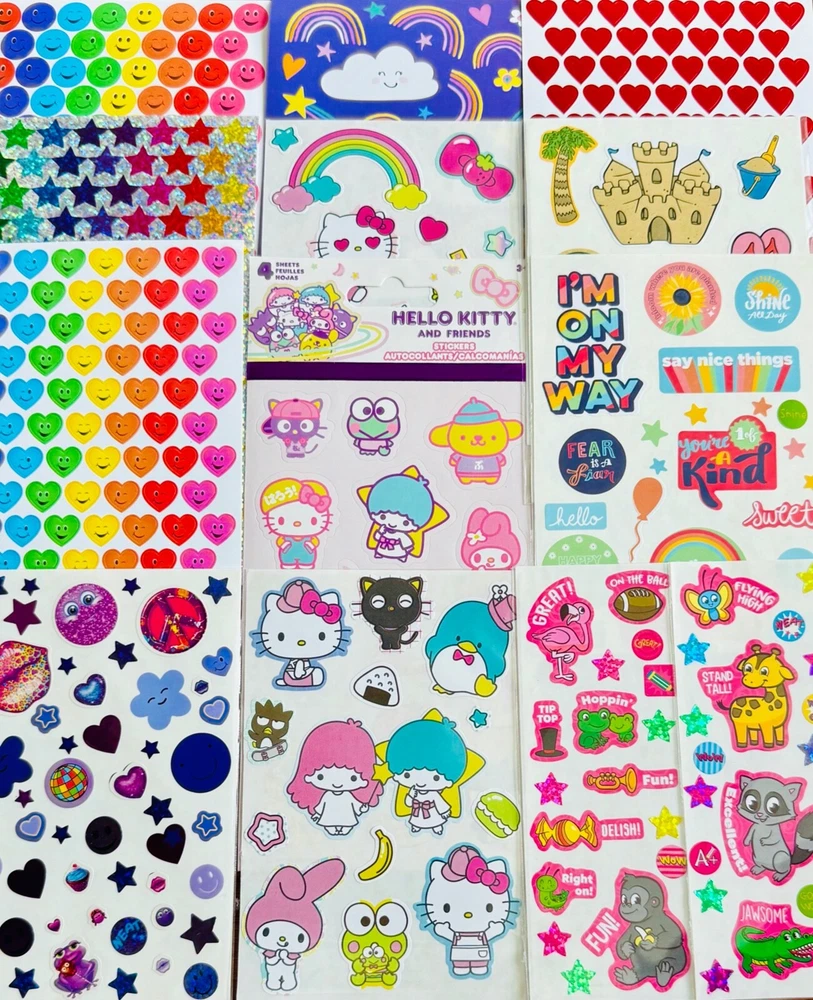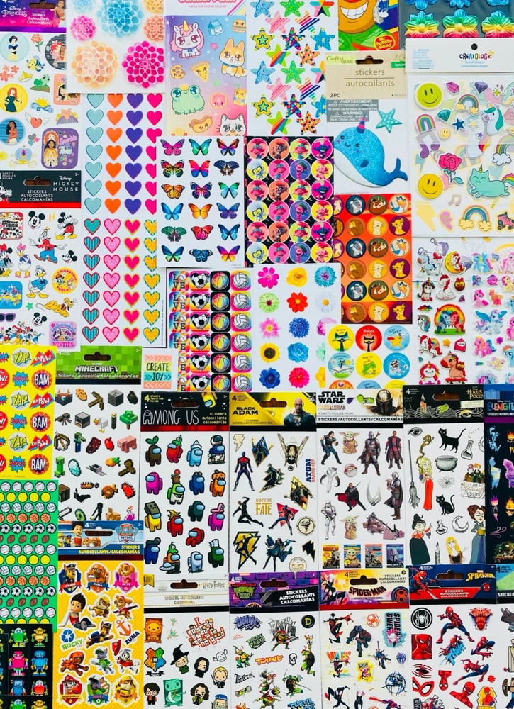 Popular Mixed Sticker Lot | The Ultimate Kit | Qty. 20 New Full Sticker Sheets Fun Assortment of Glossy, Glitter, Metallic, Foil, Laser, Puffy, Scrapbook, Cartoons, Bubble, Pop Up, Stickers For Everyone! I have included a large variety of pictures of the assortment available. The pictures give you an idea of what you will be receiving. Please Note: You will not receive everything pictured. You can choose any themes you like. Please contact me with your requests.