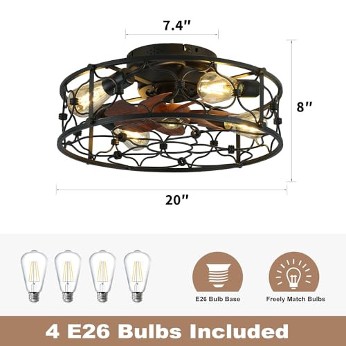 Menu 1. We require immediate payment. 2. We currently accept payment via eBay managed payments only. 3. Once payment is cleared, we will dispatch your shipment within 1-3 business days. Please refer to the "Shipping" tab for more information regarding shipping speed to your destination. Caged Ceiling Fans with Lights,20" Flush Mount Fandelier Ceiling Fan with Lights and Remote,6 Wind Speeds Smart Low Profile Farmhouse Ceiling Fan for Bedroom,Kitchen,Living Room,Include 4 Bulb Product description 【Modern Caged Ceiling Fan】Modern Caged Ceiling Fan:Farmhouse ceiling fan is designed elegant black reinforce metal frame , can well decorate the room at the same time and bring cool and comfortable air volume. 【Lighting & Ceiling Fans】You can use the remote control to only turn on the fan or light. Light and fan can be run separately,that will let you have the fan or the light separately 【Bulbs included】:4pcs E26 LED Edison vintage bulbs are ready for you. Standard sockets are easy to replace or upgrade. You can also purchase your own color changing bulbs for replacement! 【Safe&Unique Design】Our enclosed ceiling fans have been carefully designed so that t is no need to worry about accidental contact with the fan blades, ensuring a safe environment for your loved ones. Especially in bunk beds or spaces with children 【Ceiling Fan with Remote】Variable frequency mute remote control say goodbye to annoyingly loud remote beeps! you can adjust the 6-speed wind / timing function / fan blade forward and reverse / lights and fan blades work separately 【Quiet&Reversible DC Motor】Effortlessly adjust the fan's direction for changing seasons. With the included no beep remote control, toggle between downdraft and updraft modes to suit your needs. 【Easy to Install Ceiling Fan】most of the components we have already assembled, just you need to screw the bulb on and fix the light to the ceiling to run it Feel free to reach out to us for prompt support and solutions. PLEASE MESSAGE US IF YOU HAVE ANY OTHER QUESTIONS, AND MANY THANKS FOR READING ALL OF THIS. Copyright ©#. All Rights Reserved.