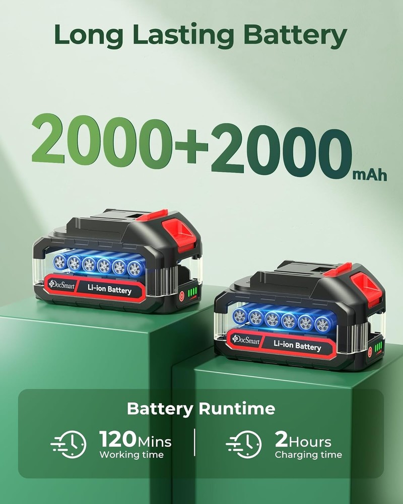 20'' Hedge Trimmer Cordless with Battery, Electric Handheld Bush Clipper Blue Description Features: High-Performance Motor: A 1000W pure copper motor drives the shrub trimmer working at the speed of up to 3000RPM and delivers faster and more efficient cuts. Cordless gardening tools feature 180° adjustable head for shaping hedges in tight areas. Thanks to the deep quenching process, it ensures smooth cutting. Suitable for elderly people and gardening beginner Durable Blades: Featuring a 20.67-inch blade made of durable 65Mn steel, this hedge cutter easily cuts through branches up to 2/3 inches thick(Blade gap), delivering sharp, clean cuts every time. Ideal for soft branches up to 1/2'' diameter, trimming thin shoots on hedges, bushes, small trees and ornaments. Hardwood may require specialized tools like pruning shear or mini chainsaw. Please apply liquid oil after use to protect the hedge blade Cordless & Portable: The handheld hedge trimmer takes about 2 hours to full charge and can work for 120 minutes. It comes with 2 pcs 2000mAh rechargeable batteries. 1 red light on the battery represents 25% power. Say goodbye to struggling with electrical cords and make your garden art easier. Our hedge clipper is compatible with Makita batteries, but our device batteries aren't compatible with Makita devices Lightweight: DocSmart hedge trimmer comes blade assembled with oil pre-coated to reduce wear and tear, simply plug in the fully charged battery, screw the baffle and start using it. Ergonomic and non-slip handheld design ensures a comfortable grip and easy control. It weighs only 4.4 lbs,not easy to get tired after long-term use. User-friendly for family and temporary work, even the elderly can easily control it Multiple Safety Protections: 1. safety lock to prevent accidental activation; 2. safety baffles to prevent plant splashing; 3. a pair of gloves to protect your hands; 4. non-slip front handle helps you to get a firm grip on the hedge trimmer; 5. goggles to protect your eyes from wood chips Gifts for Men Women: Great for keeping lawns, gardens, and outdoor spaces pristine. Ideal for the pruning needs of homeowners, gardeners, landscapers, and gardening enthusiasts. Perfect for gifting on Father's Day, Valentine's Day, Mother's Day, Christmas, Thanksgiving, birthdays, housewarmings, anniversaries Before using the hedge trimmer, please use pruning shears to cut off thick branches, do not force the tool to prune to prevent damage to the trimmer! If the blade is unable to cut large branches, stop using the trimmer immediately in case of disable and damage the engine If a thick branch gets stuck in the hedge trimmer while trimming, disconnect the power immediately to avoid damaging the engine Product Details: Brand: DocSmart Power Source: Battery Powered Color: Blue Product Dimensions: 35.8"L x 6.9"W x 6.8"H Item Weight: 4.4 Pounds Blade Length: 20 Inches Material: Mn65 Steel, Acrylonitrile Butadiene Styrene Blade Material: Mn65 Steel Cutting Width: 0.67 Inches Item Weight: 4.4 pounds Manufacturer: DocSmart Item model number: HT02-B Batteries: 2 Lithium Ion batteries required. (included) Handling We will ship all orders within 1 business day of payment. Delivery We Do Not Ship Outside of the Continental US. Return Policy All items qualify for returns within 30 days of receipt. Buyer is responsible for return shipping on any item that is not damaged. Feedback We take our reputation seriously, we buy and sell online, so we understand the value of trust. If you are unsatisfied with your order, please contact us and we will work with you to resolve it to your satisfaction.