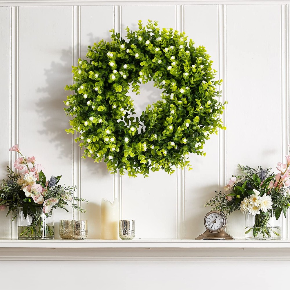 Available in many colors. Suitable for all year round, interior decoration, even Christmas, Thanksgiving, Halloween and other major holidays, you just need to superimpose some corresponding holiday elements on it yourself. WREATH SIZE: gypsophila green wreath has an inner diameter of 30cm (About 12 inch) and a fully expanded outer diameter of 50cm (About 20 inch). After receiving the fall wreath, arrange the garland to make it fuller. PREFERRED MATERIAL: Boxwood wreath of soft ight and dark green leafy branches and starry flowers are made of PE material with a sturdy round plastic ring on the back to effectively prevent the branches and leaves from falling off. UV & water protective and no fading. FOR ALL OCCASIONS: Simple color combination and elegant design allows this front door wreath very wide range of application. Indoor or outrdoor, wedding, Valentine, christmas, thanksgiving , party wreath decorations. You just need to superimpose some corresponding holiday elements on it yourself. CHOOSE WREATH: Because of the product material and style, wreaths are manually fixed to the round base one by one eucalyptus gypsophila, the shape is plump and good-looking. The wreaths received you can directly hang up, easy to use! After-sales SERVICE: Commodities are polyethylene plastic may have a little smell, please put in the ventilation can be dissipated in a day. If you have questions before and after the purchase please by , we will give you a satisfactory answer.