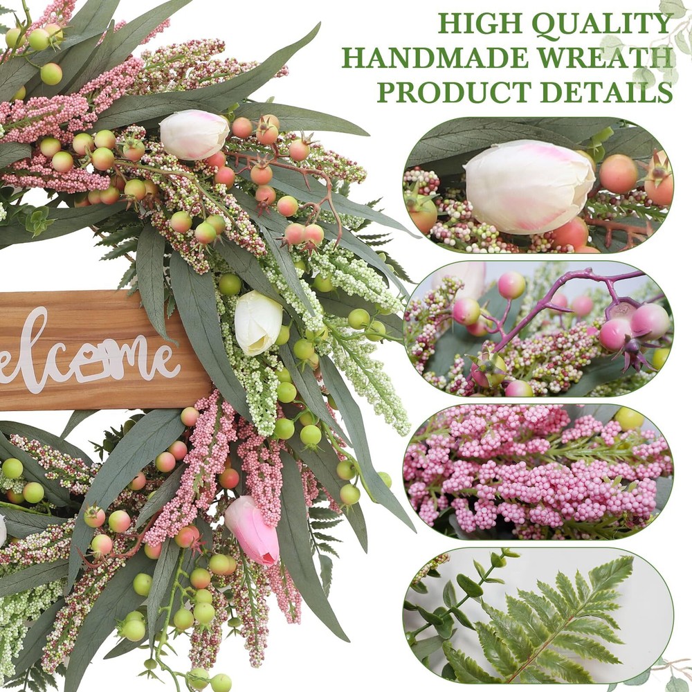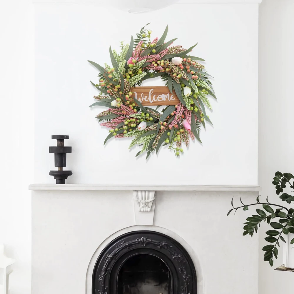 Wreaths for Front Door 20 Inch Tulip Wreath withTulip,Berries,Boxwood and Cattails Welcome Door Wreath, Porch, Window - Green Decor for Home, Farmhouse - Spring, Summer, Fall, All Seasons 【Full and realistic】 Green eucalyptus leaf wreaths hand - made by Wish Wreaths,features eucalyptus leaves, tulip,green berries, andmany Made from lots of small berries in various colors, these look like cattails embellishedon it, making the wreath full, natural and realistic. Its elegance add a vibrant and pleasant vibe to your home. 【Perfect Size】 This spring wreath is 20 inches in diameter. Each rustic farmhouse eucalyptus wreath is packed in a sturdy and exquisite box, suitable as a gift for friends. Note that because the wreath is compressed by the box to avoid being damaged during delivery, please fully stretch it to reach its maximum size. 【Versatile】 It is suitable for all seasons of the year, spring, summer, fall and winter. You can add elements of each season on it, such as maple leaves, bells, etc. welcome wreaths It comes with a solid wood "welcome" sign. You can use it in cafes, restaurants, malls, and more. And you can DIY it however you like! When you design it yourself, you will find that your wreath is the most unique scenery 【Durable】Made of high-quality materials. Colors will never fade; leaves will never fall; berries will never rot.The base of the front door wreath is made of Anatural grapevine base, which is solid and not prone to falling off, ensuring lasting stability. It can be hung on the wall, front door, porch, bedroom, living room, etc. It is perfect for indoor and outdoor, weddings and parties. It's elegance is sure to impress your family and friends. 【Guarantee】: All our spring wreaths for front door are guaranteed by quality,And every wreath is handmade. If there are any problems with our products, please 【contact us】 at the first time, we will definitely give a perfect answer. Elegant 20-Inch Tulip Wreath: Handcrafted Masterpiece for Your Home Add a touch of timeless elegance to your home with our 20-inch tulip wreath. Made with premium silk tulips and a sturdy grapevine base, this handcrafted beauty is designed to last. Perfect for doors, walls, and centerpieces, it offers vibrant color and sophisticated charm year-round. Whether adorning your entryway or enhancing your indoor decor, this exquisite wreath promises to infuse any space with grace and style. Experience the superior craftsmanship and lasting appeal of our elegant tulip wreath today. SHIPPING Domestic Buyers - We have confidence in our products, but if you are not fully satisfied please contact us within 30 days of purchase and you will get full refund. - We ship within 3 business days of payment, usually sooner - We offer FREE shipping on all orders! - We only ship to the lower 48 states, no APO/FPO addresses or PO Boxes allowed International buyers – please note: Import duties, taxes, and charges aren't included in the item price or postage cost. These charges are the buyer's responsibility. - Please check with your country's customs office to determine what these additional costs will be prior to bidding or buying. * Order Cancellation Policy ** You can return a product for up to 30 days from the date you purchased it. 1. The seller reserves the right to cancel the special case only due to eBay cancellation fee. 2. The decision of seller is the final. 3. The seller will respond to the cancellation request within 2 business days. Please wait for the result of cancellation. 4. In case the cancellation is not completed by some reasons, the buyer can follow the options below to get the refund. 4.1 The buyer can reject the item when it arrives. 4.2 The buyer can send the item back to the seller within 30 days If the buyer receives item (USA Shipment ONLY). The seller will provide the FREE return label to the buyer when the buyer opens " Return Item" case on eBay by using the reason as "Change my mind" ONLY. 5. When buyer has placed the order. The order will be processed and completed by automatic warehouse system within 5 minutes. In case that buyer sends the cancellation request after 5 minutes of placing the order, the request will be rejected. **Sending direct message to cancel the order is not allowed for every case.* Return Policy For the return case - If buyer would like to return the items for refund or replacement, please CONTACT SELLER to receive the free return label from seller. The refund or replacement will be processed with the tracking number of return label which is provided by seller only. The other ways of return which are not approved by seller will not be processed for the refund or replacement.