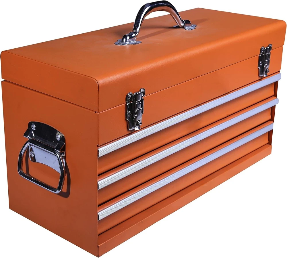 20” Lockable Metal Tool Box with 3 Fully Extendable Drawers for Secure Storage