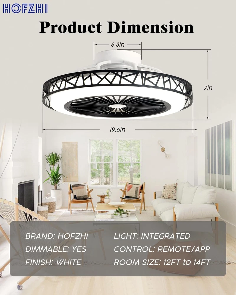 Store New Arrivals Add to Favorite View Feedback Contact 20" Low Profile Ceiling Fan with Light Bladeless Ceiling Fan Silent Reversible DC Motor Enclosed Ceiling Fan with Light Dimming LED 3CCT 6 Speed for Indoor Bedroom Living Room Kitchen (Black) Description Mounting Type Flush Mount Controller Type Remote Control Style Modern Power Source AC Control Method Remote Theme Modern Main Power Connector Type NEMA 5-15 (Edison) Number of Power Levels 6 Material Iron Number of Speeds 6 Product Dimensions 19.6"D x 19.6"W x 7"H Collection Name Modern Finish Type Powder Coated Indoor/Outdoor Usage Indoor Light Type LED Room Type Kids Room, Living Room, Bedroom, Study Room, Dining Room Connector Type NEMA 5-15 (Edison) Item Weight 7.58 pounds Special Feature Bladeless Electric fan design Ceiling Fan Color Black Form Factor Bladeless Low Profile Flush Mount Ceiling Fan Is Cordless? No Voltage 1.2E+2 Volts (AC) Recommended Uses For Product Cooling, Air Circulation Included Components Remote Speed 6 RPM Switch Type Pull Chain [ Bladeless Ceiling Fan ] Bladeless ceiling fan wiht a light design for an quiet and comfortable experience. Efficient air distribution for smooth airflow, keeping the indoor environment fresh. Ideal for low ceiling small rooms, like bedrooms, kitchens, living rooms, etc. [ Silent Reversible Motor ] This flush mount ceiling fan uses a high-quality copper motor that provides you with strong wind but quiet. The Reversible Design allows you to adjust the airflow direction according to the season, maintaining a comfortable temperature. [ Light Your Room ] Our Enclosed Ceiling Fan with Light is equipped with an energy-saving LED light that light your whole room, they can adjust the brightness and 3 color temperature by remote control and application in your phone. [ Easy to Install ] Detailed installation guide and video for low profile ceiling fan, we have assembled most parts of the ceiling fan, so even non-professionals can easily complete it in 1 hour. [ What You Get ] We endeavor to provide the reliable products to our customers and value your experience. You will enjoy our service policy. If you have any question with the purchase, please feel free to ask us. Product Description HOFZHi 20“ Low Profile Ceiling Fan with Light Metal Cover The one-piece die-casting cover combines stability with an avant-garde design. Thinner Body Ideal for low ceiling heights of 2.5m-3.2m. Easy to Install Almost no assembly is required , all-in-one design minimizes installation time. ABS Lampshade Gorgeous lampshade can make the light dispersion more uniform, soft, and eye-friendly. Control in One Hand You can download the Application through our user manual. Living Room Kitchen Hallway Bedroom Doorway HOFZHi Ceiling Fan Series Add to Cart Add to Cart Add to Cart Add to Cart Price $129.99 $ 129 . 99 $139.99 $ 139 . 99 — $99.99 $ 99 . 99 $69.99 $ 69 . 99 Size 20 Inch 20 Inch 36 Inch 42 Inch 52 Inch Light Dimming LED Dimming LED Dimming LED E26 / E27 Bulb Dimming LED Control Way APP/Remote APP/Remote Remote Controller Remote Controller Remote Controller Timer Setting ✔ ✔ ✔ ✔ ✔ Speed Level 6 6 6 6 6 ABOUT US We offer the best prices around on high quality products. Our E-store includes media such as books, movies, music and games while offering electronics, toys, sporting apparel, clothing, tools, general home, garden items and more. SHIPPING We are always working hard to ensure your package arrives as soon as possible. Please understand that some factors like weather, high postal traffic, and the performance of shipping companies are outside of our control. We offer free shipping to the lower 48 states and ship within 2 business days of payment, usually sooner. We do not accept P.O. Boxes. Please provide a physical address. For shipping outside of the continental USA, we only use eBay's Global Shipping Program.The item is shipped to KY and then sent to the rest of the world. International customers are responsible for all duties and taxes. Continue to check out in order to calculate costs for shipping the item to your country. Messages regarding eBay's Global Shipping Program MUST be directed at eBay EXCLUSIVELY. RETURNS We offer a 30-Day Return Policy on items which you are not completely satisfied with. You have the option for a full-refund or an exchange of the item. No returns are available on items shipped outside of the USA. PAYMENT We accept PayPal. CONTACT US This page content is yet to come Please ad us to your favorite seller and visit again later Thank You CUSTOMER SATISFACTION We try our very best to make sure every customer is completely satisfied. If there's a problem, message us! We're happy to help. WE ACCEPT Copyright © 2021 AutoDS. | All Rights Reserved