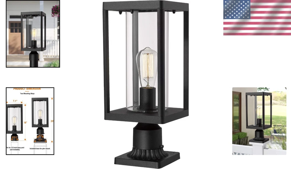 20" Modern Outdoor Post Light - Black Cast Aluminum Lantern with Clear Glass ‹ › ‹ › ‹ › ‹ › ‹ › ‹ › ‹ › ‹ › ‹ › 20" Modern Outdoor Post Light - Black Cast Aluminum Lantern with Clear Glass Features: Modern minimal design that showcases simplicity and elegance. Durable die-cast aluminum construction with a weather-resistant, powder-coated finish. Compatible with multiple mounting options: pier mount or post mount. Surrounding clear glass highlights a vintage filament bulb beautifully. Suitable for use in wet locations, perfect for enhancing outdoor spaces. ETL listed for guaranteed safety and quality. Specifications: Overall dimensions: 7"L x 7"W x 20"H Pier mount base dimensions: 5.75"L x 5.75"W x 1.75"H Fits standard 3" post (not included, sold separately) Power: 110-120V AC Hardwired Compatible with E26 medium base Edison bulbs (60W max) including LED, Fluorescent, and Incandescent bulbs (bulbs not included) Service support for 2 years Why choose our Modern Outdoor Post Light? Transform your outdoor spaces with our 20" Modern Outdoor Post Light. Designed with a sleek, minimalistic aesthetic in mind, it not only illuminates pathways and gardens but serves as a stylish statement piece. Made from durable materials, this post light can withstand the elements while highlighting your favorite vintage-style bulbs. With its versatile mounting options and compatibility with various bulb types, you can customize your lighting experience to suit your needs. Light up your yard, driveway, or path with elegance and functionality—order your Modern Outdoor Post Light today and create a warm, welcoming atmosphere in your outdoor retreat! Shipping Free & Fast Shipping - We offer free shipping to most of the USA with a normal delivery time of 3-10 businessdays. However, due to various situations, additional delivery time (up to 3 weeks) may be required for some items. Alternative Carriers - We may use alternative carriers (e.g. USPS, FedEx, UPS, etc.) to ensure your package arrives safely and on time. Due to the use of multiple carriers, we are unable to provide a tracking number automatically. Handling Time - Orders are processed and shipped within 1-5 business days of receiving cleared payment. Shipping Restrictions - Shipping to Alaska, Hawaii, Puerto Rico, Guam, and other US territories may incur shipping charges or delivery restrictions. Please contact us before ordering, or your order can be refunded/cancelled. State Restrictions - There may be restrictions based on your state of purchase. For example, certain items may not be shipped to California due to state regulations. Contact for Tracking Updates - If you require tracking updates or have any concerns about the delivery of your order, please feel free to contact us, and we will be happy to assist you. Return Please see our ebay return policy. We do not accept return on most products. This is to avoid customers mis-using ebay returns. All sales are final. Please be sure to check the return policy listed at the top of the listing. In rare cases, we may accept returns, if the buyer pays both ways shipping and 20% restocking fee. If you are un-sure of return policy of a particular item, please ask before buying. Payment We accept all major credit cards, PayPal, and Apple Pay for your convenience. Your payment information is secure and encrypted to ensure a safe and seamless transaction. Please complete your payment within 3 days of purchase to avoid any delays in shipping. Feedback Your feedback is extremely important to us. We strive to provide the best products and customer service possible. If you are satisfied with your purchase, please take a moment to leave us a positive review. If you have any concerns or issues with your order, please contact us before leaving negative feedback. We are committed to resolving any problems and ensuring your satisfaction. Contact Us If you have any questions or concerns, please feel free to reach out to our customer support team. You can contact us through the eBay messaging system. We are available Monday to Friday, 9:00 am to 5:00 pm EST, and we will do our best to respond to your inquiry within 24 hours. Buy it now and enjoy a pleasant shopping experience! UPC: Not Set Unit Quantity: 1 Features: Weather Resistant,Modern Design,Durable,Corrosion Resistant,Easy Installation,Includes Mounting Hardware,Suitable for Wet Locations Theme: Modern Light Color: Black,Clear Mounting: Pier mount,Post Mount Material: Aluminum,Glass,Cast Aluminum Control Style: App Control,Push Button Smart Home Compatibility: Not Set Labels & Certifications: Not Set Type: Post Light Brand: Unbranded Power Source: Corded Electric Installation Area: Outdoor Sensor Type: Not Set Lighting Technology: LED Number of Lights: 1 Color: Black Number of Settings: 1 Energy Star: Not Set MPN: Not Set EC Range: Not Set Style: Modern Finish: Powder Coated Size: Large Power Consumption: 60 W IP Rating: Not Set Voltage: 120 V Bulb Shape Code: E26 Item Diameter: Not Set Country/Region of Manufacture: Not Set Lumens: Not Set Color Temperature: Not Set Bulb Life Hours: Not Set Model: Not Set Item Height: Not Set Item Length: Not Set Item Weight: 5.6 lb Item Width: Not Set Unit Type: lb