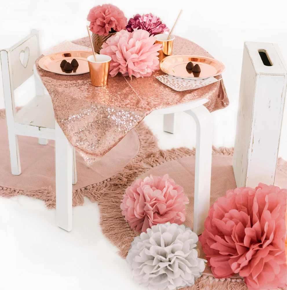 Tissue paper pom pom decorations are perfect for birthdays, engagements, weddings, bachelorette party, baby showers for girl, bridal showers or garden party. If you are going to celebrate a special event, you just found the perfect party decoration to create an elegant, festive atmosphere! Why choose us? We pay extra attention and strive to provide the best party pom poms in the market by using the highest quality materials available and by following the latest fall color trends We took time to extensively research popular color themes to provide you with the most exquisite color sequence for your event. With this party decoration kit, we bring you a stunning color combination by assorting shades like the lovely blush pink , the metallic, pink rose gold paired with soft neutral tones, such as grey, and of course the elegant dusty rose . These colors give an enchanting touch to the whole event! Go for glamour, romantic, vintage and modern all rolled into one As an extra touch, we use a generous amount of tissue paper sheets to ensure the pom poms are always fluffy and full What do you get? Our party supply kit contains a mixture of 20 assorted tissue paper pom poms which come in four different sizes (14", 10", 8", 6") and colors: 8 pcs of Pink Rose Gold pom poms 4 pcs of Blush Pink pom poms 4 pcs of Dusty Rose pom poms 4 pcs of Grey pom poms The Pom Poms will arrive folded, pre-cut and tied with a satin ribbon ready to hang! Are you ready to add Elegance and Beauty to your party? Buy NOW! TISSUE POM POMS DECORATION KIT (20 PIECES, 4 ASSORTED COLORS, 4 SIZES) - Contains 5 pieces of each size: 14”, 10”, 8” and 6” - each size comes in 4 different colors, being the perfect birthday party decoration, baby shower decoration, bridal shower decoration or wedding decoration AMAZING, CUSTOMIZED COLORS - Our tissue paper pom pom decorations come in BLUSH PINK, ROSE GOLD, GREY and DUSTY ROSE. Each color has been carefully dyed to meet the rose gold party decoration color trend, giving an elegant, unique touch to your event VERSATILE USAGE - The tissue paper flowers can be used for indoor and outdoor events, as photo backdrop, as room, table, or chair decoration, hung on ceilings, tents or trees PREMIUM QUALITY MATERIALS - We only use the most lush and generous amounts of high quality tissue paper to ensure that the final tissue flower pom poms will result in a perfect, round flower ball. They are easy to assemble, step-by-step instructions included SATISFACTION GUARANTEE - If for any reason you are not satisfied with the party pom poms decoration, please contact us so we can make it right for you