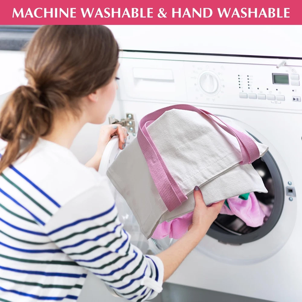 20 Pack Sublimation Blanks Canvas Tote bag, Reusable Large Grocery Bags DIY Heat Transfer Cosmetic Makeup Bags Shopping Bags with Customized Color for DIY, Advertising, Christmas Craft Gift Package includes 10 x sublimation blank canvas bag 10xsublimation blank canvas zipper pouch Upgraded Sublimation Canvas Tote Bag: Sublimation Blanks tote bag set comes with 10 large-size blank canvas bags, and 10 canvas zipper pouches, which is sufficient to meet your various needs, is suitable for Daily life and travel needs, the blanks design is perfect for screen print, embroidery, or heat press transfer and simple blank bags allow you to create own paintings. Best gifts for Valentine's Day, Mother's Day, Father's Day, Halloween, Thanksgiving, Christmas, New Year's, etc Unique Design Customized Color: We are not simply blank bags, each tote bag and the cosmetic bag has its own strap and zipper color, A total of 10 colors. And designs can match different outfits, like jeans, skirts, T-shirts, suits, and pants. Tote bag size is approx 15.7*15*4 inches, large enough to hold your daily accessories, including your clothes, water bottles snacks, and so on. The makeup bag size is about 8*6inch and can hold small items such as makeup brushes, , lipstick, etc Multi-Function Sublimation Products: Perfect for painting and decorating projects at home, outdoors, and camp (please add a piece of paper to the bag to avoid the ink permeating). Prepare Heat Transfer Vinyl paper to iron on and transfer it to the bag, also can do embroidery. canvas zipper bag can be applied as an invoice bag, gift bag, coin purse, mobile wallet, business card bag, or cosmetic bag, canvas bag can be applied as a grocery/ shopping bag, beach bag, wedding bag, and so on High-Quality Canvas Material: Canvas pencil bags and blank tote bags for vinyl projects are mainly made of canvas material, which is sturdy, lightweight, reusable, heavy-duty, and washable, offering you long time application, convenient to fold up to when not in use. Please note "THIS ITEM IS NOT INTENDED FOR USE BY CHILDREN 12 AND UNDER" Enjoy DIY Fun: sublimation printing temperature 170-190 degrees Celsius, use time 40-60 seconds, these DIY heat transfer cosmetic makeup bags and tote bags are suitable for sublimation, can absorb dyes well, at the same time, you can also use paints to paint on them, DIY these bags with your family, make your own pouches, the most important thing is these canvas tote bags also can be reused, helping you to reduce the impact on the environment. They are good companions in your daily life