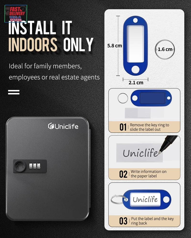 Store New Arrivals Add to Favorite View Feedback Contact 20 Position Key Cabinet with Combination Lock Resettable Black Digital Security Storage Box Steel Key Organizer with Colorful Key Tag Labels Stickers and Hooks Description Item model number -3500 Number of Items 1 Material Type Alloy Steel Number of Pieces 1 Is Customizable No Assembly Required Yes Product Dimensions 3"D x 6.5"W x 8"H Manufacturer Part Number -3500 Installation Type Wall mount Number of Doors 1 Number of Drawers 1 Frame Material Alloy Steel Door Style Flat Panel Item Weight 3.04 ounces Lock Type Combination Number of Shelves 1 Special Feature Lockable Material Alloy Steel Style Modern Mounting Type Wall Mount Color Black Packaging "" Shape Rectangular Base Type Cross Back Material Type Alloy Steel Recommended Uses For Product Keys Backing Material Alloy Steel Size 20 Keys 20 Positions: The storage case has been greatly optimized to make the best use of space. Practical to hold up to 20 keys. Ideal for schools, houses, companies, real estate agencies, etc. Install it INDOORS ONLY! Combination Lock: Provide a secure 3-digit code lock with 1,000 combination methods to lock/unlock the cabinet. Ensure you the private and exclusive access to the keys. Resettable Code: Initial code: “000”. Push the control lever inside the cabinet from A to B, set your desired code and then pull the lever back from B to A to complete code resetting. 20 Tags in 4 Colors: Each flexible key tag contains a removable blank paper for labeling. And its transparent window allows you to identify items at a glance. Easy to Track: Contain 20 number stickers and 20 hooks to arrange keys in numerical order and keep them neatly organized. (Screws and wall anchors are included.) Product Description 1 Combination Lock 2 Resettable Code 1 Colorful Key Tags 2 Hooks & Stickers Wall Mounted Security Box Add to Cart Add to Cart Add to Cart Add to Cart Add to Cart Add to Cart Add to Cart Customer Reviews 4.4 out of 5 stars 882 4.5 out of 5 stars 1,583 4.4 out of 5 stars 882 4.5 out of 5 stars 1,583 4.4 out of 5 stars 882 3.5 out of 5 stars 12 5.0 out of 5 stars 1 Price $15.99 $ 15 . 99 $26.99 $ 26 . 99 $27.99 $ 27 . 99 $37.99 $ 37 . 99 $36.99 $ 36 . 99 $79.99 $ 79 . 99 $95.99 $ 95 . 99 Quantity of Keys Hold 20 Keys 28 Keys 48 Keys 60 Keys 100 Keys 60 Keys 120 Keys Colors of Key Tags 4 Assorted Colors 5 Assorted Colors 9 Assorted Colors 5 Assorted Colors 10 Assorted Colors 5 Assorted Colors 5 Assorted Colors Tag Placement Method Hang Hang Hang Hang Hang Hang Hang Security Method Combination Lock Combination Lock Combination Lock Combination Lock Combination Lock Combination Lock & Key Lock Combination Lock & Key Lock Dimension 8'' x 6.3'' x 3'' 9.8'' x 8'' x 3'' 9.8'' x 8'' x 3'' 9.8'' x 8'' x 3'' 11.8'' x 9.5'' x 3'' 15.2'' x 13.1'' x 5.5'' 15.2'' x 13.1'' x 5.5'' ABOUT US We offer the best prices around on high quality products. Our E-store includes media such as books, movies, music and games while offering electronics, toys, sporting apparel, clothing, tools, general home, garden items and more. SHIPPING We are always working hard to ensure your package arrives as soon as possible. Please understand that some factors like weather, high postal traffic, and the performance of shipping companies are outside of our control. We offer free shipping to the lower 48 states and ship within 2 business days of payment, usually sooner. We do not accept P.O. Boxes. Please provide a physical address. For shipping outside of the continental USA, we only use eBay's Global Shipping Program.The item is shipped to KY and then sent to the rest of the world. International customers are responsible for all duties and taxes. Continue to check out in order to calculate costs for shipping the item to your country. Messages regarding eBay's Global Shipping Program MUST be directed at eBay EXCLUSIVELY. RETURNS We offer a 30-Day Return Policy on items which you are not completely satisfied with. You have the option for a full-refund or an exchange of the item. No returns are available on items shipped outside of the USA. PAYMENT We accept PayPal. CONTACT US This page content is yet to come Please ad us to your favorite seller and visit again later Thank You CUSTOMER SATISFACTION We try our very best to make sure every customer is completely satisfied. If there's a problem, message us! We're happy to help. WE ACCEPT Copyright © 2021 AutoDS. | All Rights Reserved