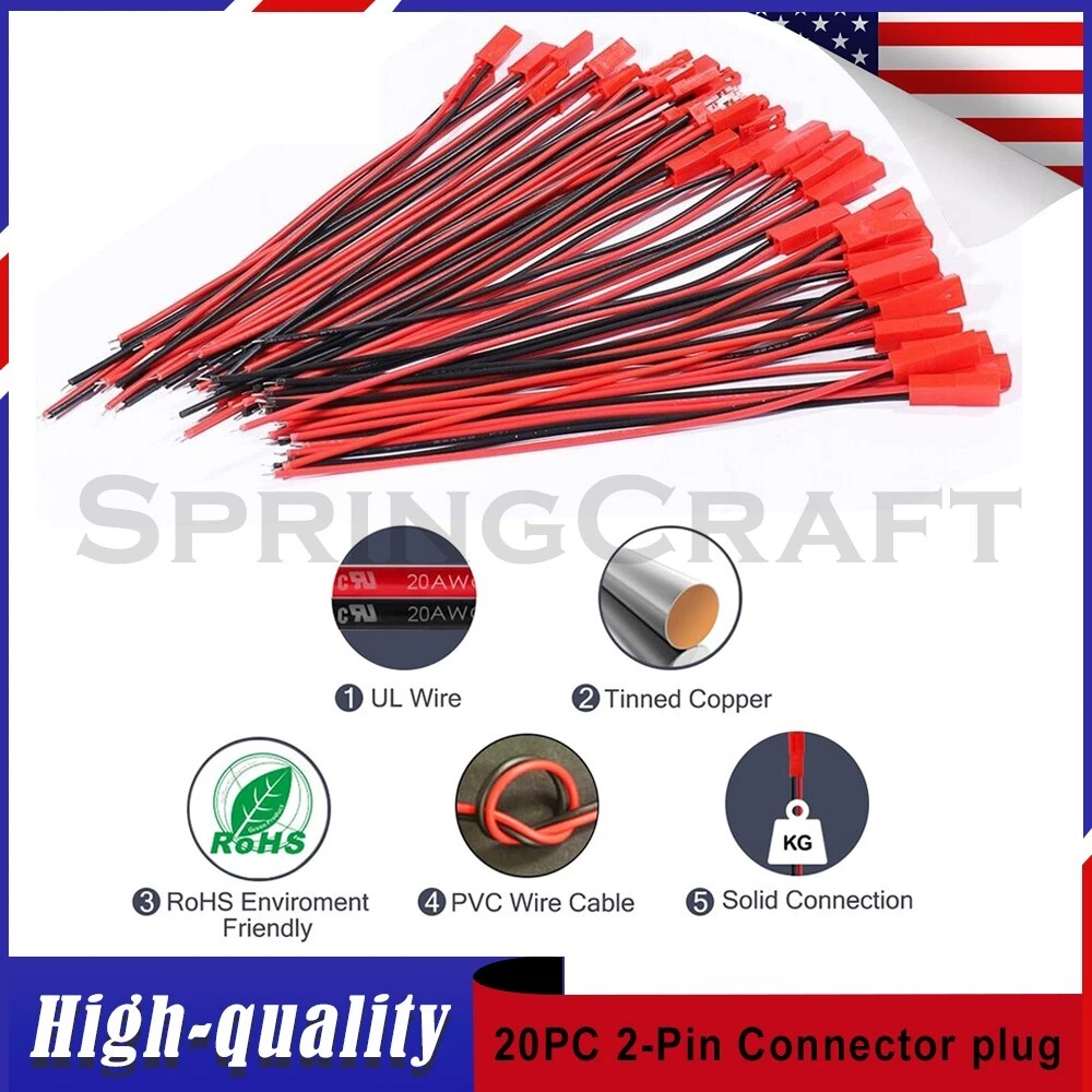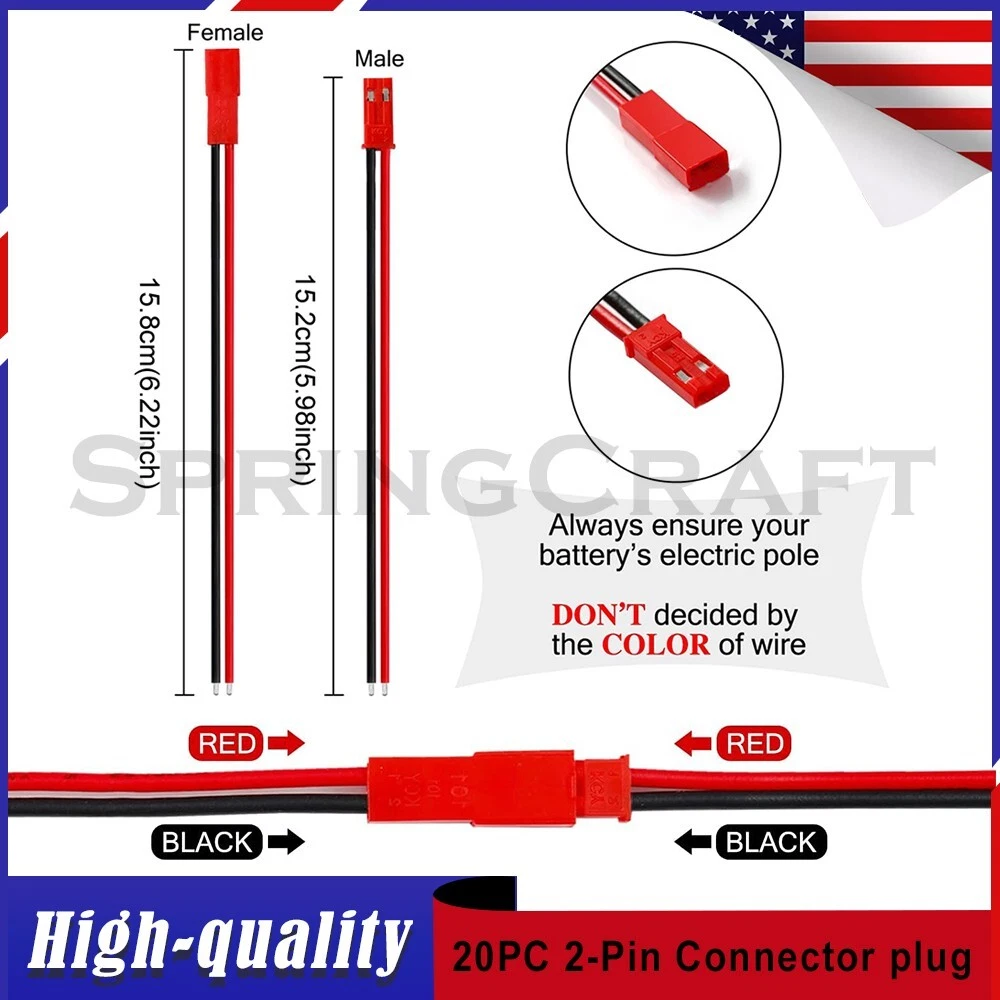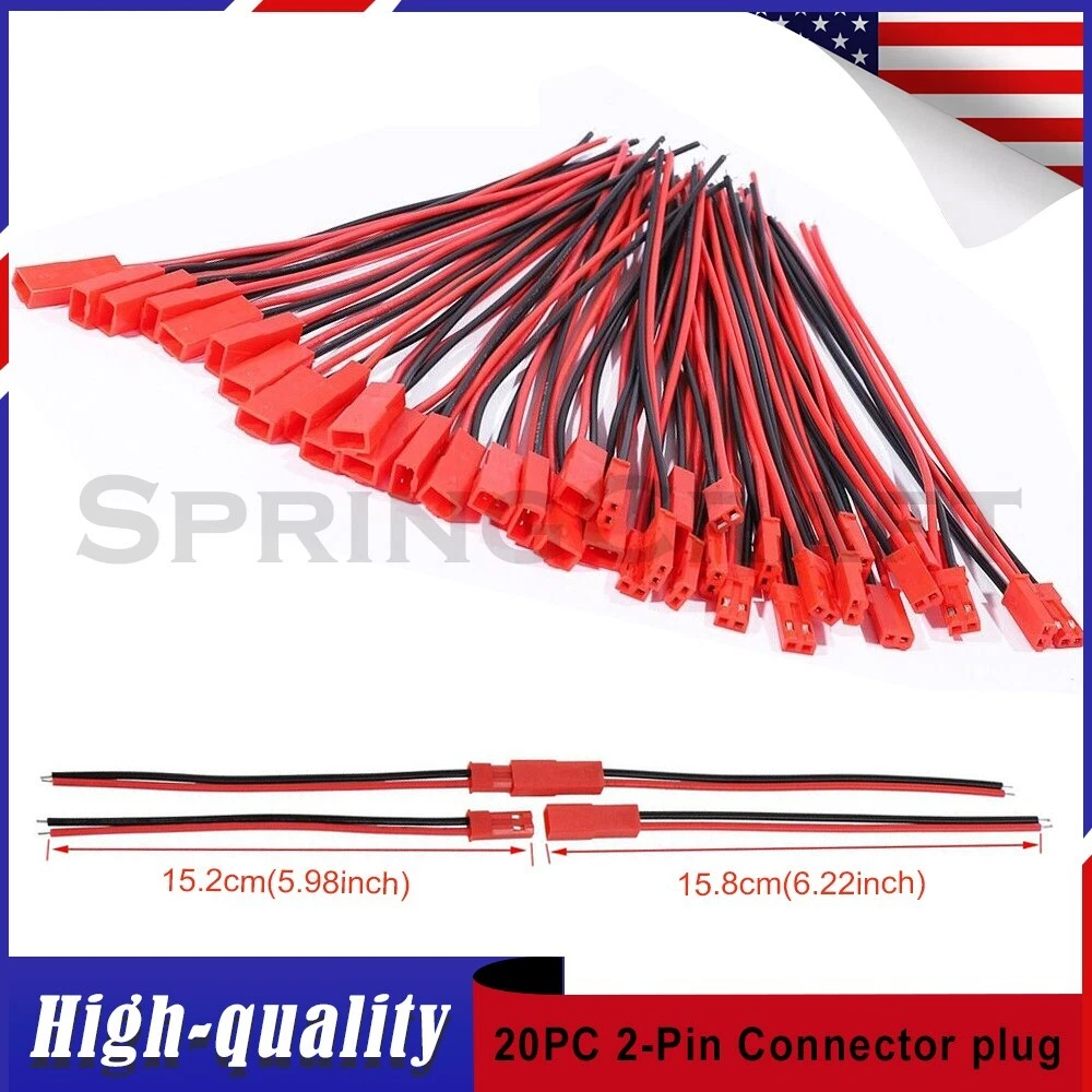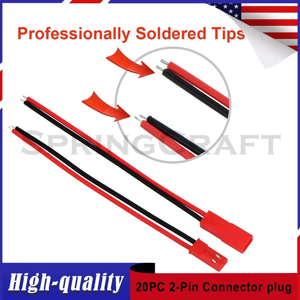 Specifications: Length of Cable (included Plug): 15.2cm+15.8cm , 22 AWG, 2 Pin. Wire Connector for JST: Excellent Flexibility & Good Conductors, tin plated copper, with good oxidative stability and weldability. Main Uses: For mini RC helicopter, indoor 3D plane, Li-Po battery, Esc Bec Board and NiMh battery connection and etc. Package Included: 20 pairs (20pcs Female + 20pcs Male) Connector Adapter Cable for JST Features: 【Tin Plating Copper Wires as Conductor】- SIM & NAT 22 AWG Connectors for JST used tin plating copper wire as conductor, which improve the heat and oxidation resistance of the conductive metal and above all, it has better solderability. 【Good Flexibility and Stability】- For JST connector sets using high-strength material as insulation, have advantages of acid resistance and withstand high temperature, which avoid wires overheating and damaging your components finally. 【SIM & NAT 2 Pin Connector for JST】- One side for plug the other side for welding. Suitable for most mini RC helicopter, LED strip light and good for connecting motor, ESC battery, etc..