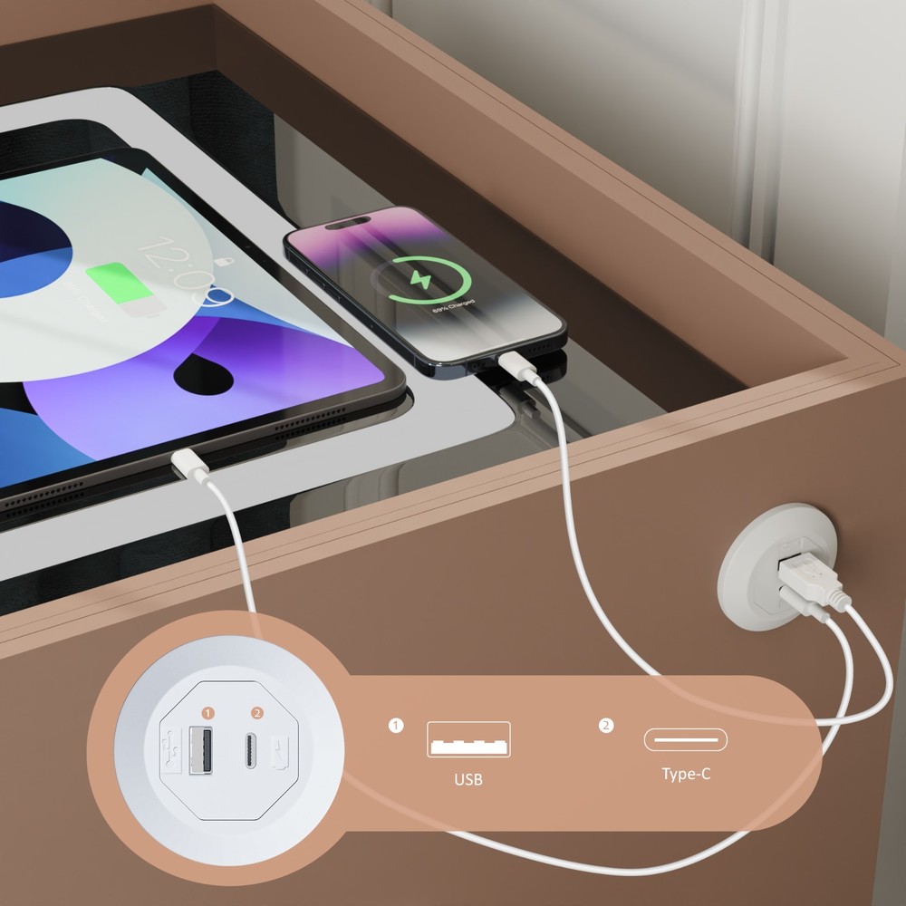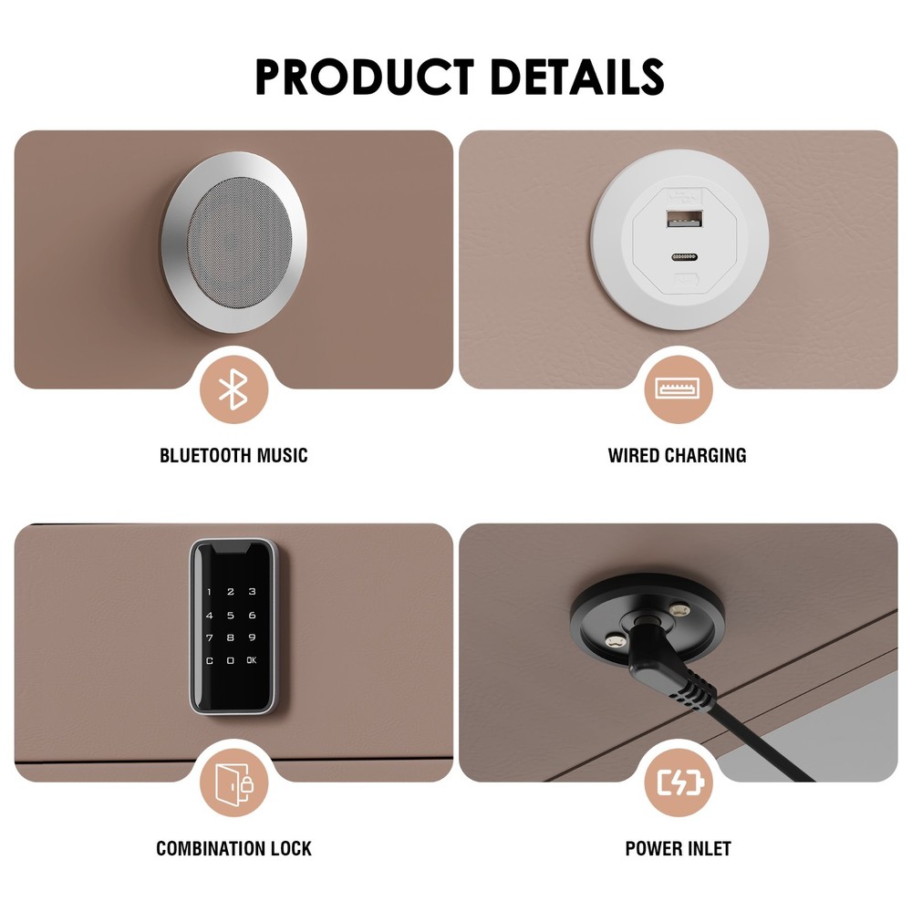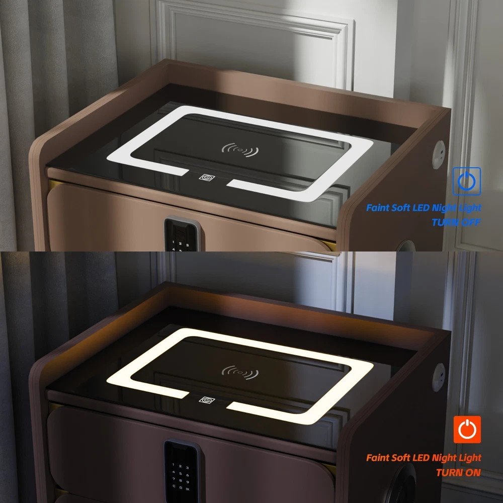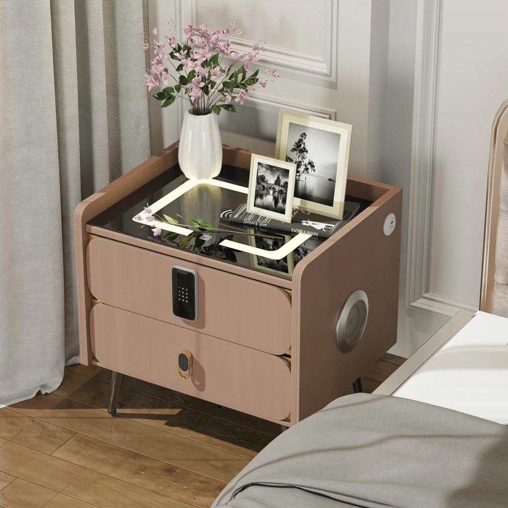 20" Tall Smart nightstand with combination lock &Bluetooth player(Light coffee) Features Smart nightstand: The smart nightstand uses a tempered glass desktop, which is not only wear-resistant and scratch-resistant; but also easy to clean. The soft sliding drawer design provides ample space to organize items and keep them tidy. With USB and TYPE-C ports and wired charging: The nightstand’s charging function with USB and Type-C ports and wireless charging makes it easy for you to charge mobile devices such as phones, tablets, readers, and more. (Only supports charging mobile phones with built-in wireless charging function). Secure combination lock: Simply set a digital password before storing and you can keep your personal belongings safe. Bluetooth speakers: There are Bluetooth speaker players on both sides of the nightstand. You only need to connect your smartphone to the speaker via Bluetooth, and you can easily enjoy wonderful music before falling asleep at night. LED 3-color adjustable light: The nightstand comes with 3-color LED (warm/cool/natural), you can adjust the lighting effect with just one touch button, you can adjust the light to suit the room as needed. No assembly:The nightstand is fully assembled before delivery and can be used without installation! Dimensions and load-bearing capacity: the nightstand is 20 inches long, 16 inches wide,20 inches high, and weighs 31 pounds. The top can bear a load of 90 pounds. Other Dimensions Legs 6'' H Overall 14'' H X 16'' W X 20'' D Drawer Interior 3'' H X 18'' W X 16'' D Overall Product Weight 31 lb. Tabletop Thickness 2'' Details Frame Material Solid + Manufactured Wood Top Material Solid + Manufactured Wood, Stainless Steel, Tempered Glass Drawers Included Yes Number of Drawers 2 Drawer Glide Type & Extension Soft Close, Metal Slide Interlocking Drawers Yes Handle Material Metal Gloss Finish Yes Lighting Included Yes Compatible Bulb Type LED Finished Back No Plug-In Yes Smart Enabled Yes Smart Home Hub Compatibility Bluetooth Natural Variation Type Natural Wood Grain Color Variation, Natural Stone Color Variation Built-In Electrical Outlet Yes Imported Yes Durability Water Resistant, Slip Resistant, Chip Resistant, Shatter Resistant, Fray Resistant Shape Rectangular Tabletop Weight Capacity 90 lb. Product Care Wipe clean with a dry cloth, Do not use harsh chemicals or cleaners, Do not use any cleaning agents, Do not put removable parts in dishwasher Integrated Wireless Charging Surface Yes USB Powered Yes Handle Finish Metal Finish Lockable Yes Manufactured Wood Type MDF Wood Species Pine Bulb Included Yes Assembly Assembly Required No Payment Delivery details Terms of sales About us Contact us Payment You could make payment via: Delivery details Packages will ship via by UPS or USPS within our handling time,once the package is shipped out ,normally shipping takes about 3-10 working days,but due to different cities and states,shipping time will be different. Terms of sales If you any problem about shipping information, or the item you got : Arrived damaged; Wrong item sent; Missing parts or pieces; Doesn't work or defective; Doesn't match description or photos. Pls click "Contact Seller" and send us message firstly. Then we could have a check and will take responsibility to resolve the problem with you in good communication. About us Our company specializing in selling all kinds of light fixtures,such as ceiling fans,chandeliers,crystal lights,retro lamps,pendant light,etc. If there's any light fixture you are interested,pls feel free to contact us for more details. Contact us Normally your message will be replied in 1 business day,If after 24 hours you do not receive our reply,please kindly re-send us the message,because sometimes ebay message system will have technical problem,so your message can't send to us successfully.