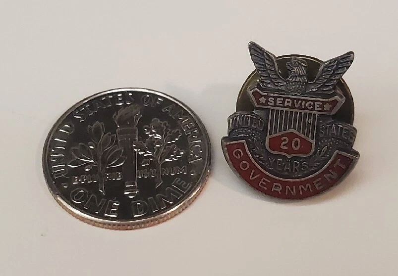 20 Years of Government Service Pin Lapel Vest Vintage Tie Tack Sterling NYC. Please review pictures carefully for condition and size.
