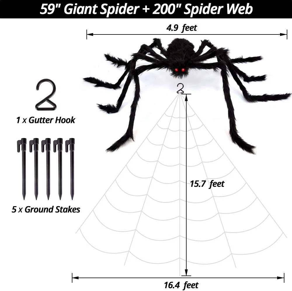 Transform Your Halloween with a Giant Spider & 200" Triangular Web! π·οΈπ πΈοΈ Stand Out This Halloween! Get ready to amaze your neighbors and guests with a GIANT 59" furry black spider perched on a massive 200" hand-knotted triangular web! Perfect for front porches, yards, walls, and haunted house setups, this spooky centerpiece brings instant Halloween thrills. π·οΈ Creepy, Realistic & Eye-Catching! Huge black spider with red eyes and hairy body feels lifelike. White triangular spider web made of strong polyester threads, durable for indoor & outdoor use. Flexible legs & sturdy design allow easy positioning and creepy realistic effect. Hand-knotted web joints ensure long-lasting structure without glue. π Bring home the ultimate Halloween centerpiece and create a spine-chilling, fun experience for everyone! β¨ Make This Halloween Unforgettable! Ideal for indoor and outdoor setups: doors, windows, trees, lawns, dorms, offices, or bars. Includes: 1 x 59" spider, 1 x 200" triangular web with gutter hook, 5 x ground nails. Perfect for Halloween parties, haunted houses, masquerades, parades, or costume events. Add a thrilling, spooky vibe and become the talk of the neighborhood! π Easy to Decorate & Reusable! Lightweight spider & web with hook for effortless hanging. Foldable spider legs for custom positioning. Survives rain, storm, and extreme weather β reuse year after year. Perfect for scaring trick-or-treaters and creating a haunted atmosphere for any Halloween party. β Why Buy From Us? Donβt hesitate to orderβ we wonβt let you down ! We offer FREE shipping across the USA with fast delivery in just 1β3 business days . You can trust our store for quality products and excellent customer service. π Thank you for choosing our eBay store β weβre here to serve you!