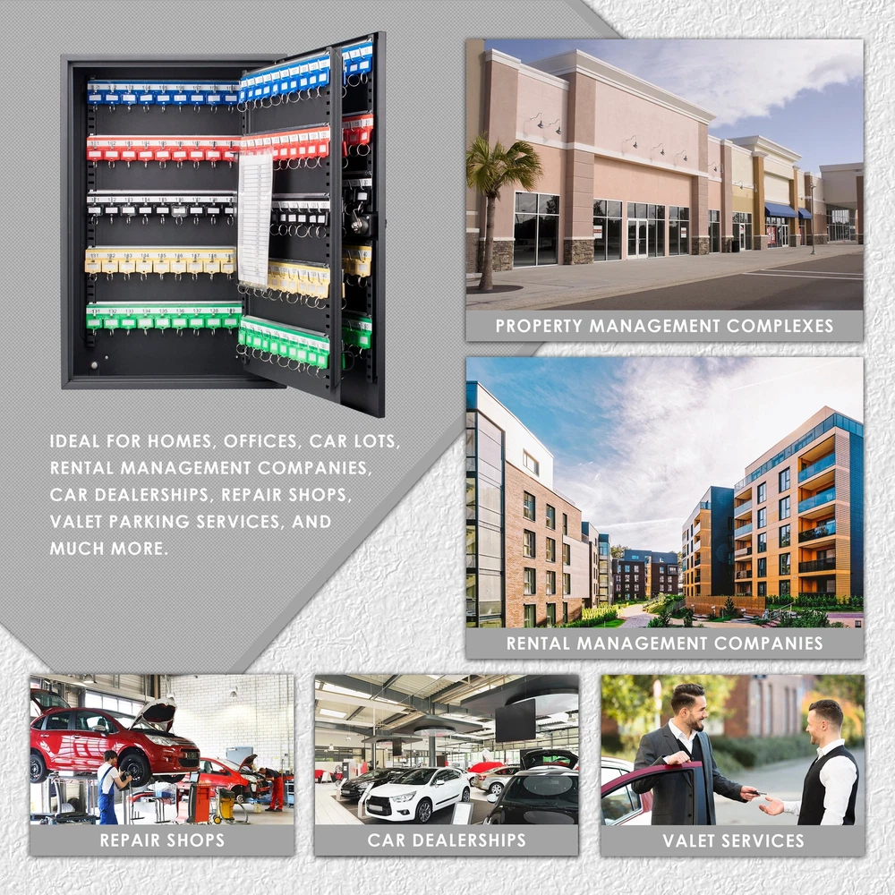 Specifications Place of Origin #originPlace# Main Color Gray Main Material Steel Dangerous Goods #dangerFlag# Dimensions & Weights Assembled Length (in.) 5.50 Assembled Width (in.) 14.75 Assembled Height (in.) 21.75 Weight (lbs) 20.70 Product Features ADJUSTABLE KEY CABINET - Secure wall mount lock box with adjustable racks for flexible key storage. Keep keys organized and easily accessible. ?✨ COMBO LOCK - Organize and secure up to 200 keys with ease using our key cabinet equipped with a reliable combination lock for added protection. ?️? COLORFUL KEY TAGS - Colorful key tags enable quick identification, no more fumbling for the right key. Stay organized! ?️? KEY MANAGEMENT - Efficiently manage and secure keys for various settings like homes, offices, and businesses with the convenience and reliability of a key cabinet. ?? WALL MOUNT - Comes with mounting hardware for easy installation. Keep keys safe and accessible, hassle-free. ?️? Description
