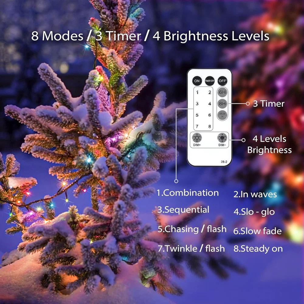 Store New Arrivals Add to Favorite View Feedback Contact Fast deliveries to the customer's home Quality customer service John Make the customers happy! 200 LED Multicolor Christmas Lights, 8 Modes Blinking Christmas Tree Lights with Remote, Colored Christmas String Lights for Outdoor Indoor Party Decoration Description π[Long Length and END-TO-END]: 200 LED multi colored Christmas Lights 66ft long, plus a 10ft extension cord. The updated mini outdoor Christmas lights are end-to-end connectable. It could be extended to a maximum of 6 light strings (total 396ft/1200led). Choose more than one, these extra-long strings of lights can be used to decorate any big scene you want. Just need 1 remote to control all lights and 1 socket for electricity. π[Super Bright and 4 Brightness Levels]: Super brightness Christmas tree lights to give your Christmas decoration icing on the cake. Both day and night, it is particularly conspicuous. The Christmas lights have 4 brightness levels, you just need to press the dim +/- button on the remote for settings of 100%, 75%, 50%, or 25%. π[5 Gorgeous Colors and 8 Modes]: SUDDUS blinking christmas lights have five unique colors: lime green, aquamarine, rose, ruby, and orange. SUDDUS exclusive multi-color Christmas lights have 5 superior jewelry tones colors, and higher quality. This 200led colored Christmas lights have 8 lighting modes: steady on and 7 flashing modes (comb, in waves, sequential, slo-glo, chasing/ flash, slow fade, and twinkle/ flash). Creating a colorful and twinkling dream world for you. π[Waterproof and Safety]: IP44 Christmas string light is waterproof (Both the plugs and end-to-end connectors have caps to block the ingress of water), suitable for indoor and outdoor decorations, including trees, pathways, garlands, houses, roofs, balcony, party, porch, garden and anywhere. UL588 safety-certified Christmas lights come with 3 strands of wires, which can withstand long working times. So it will be more durable. It will not have an overheating problem. Save to touch any time. π[Remote Control and Timer Function]: The range of the remote control is 32ft. With a wireless remote, you donβt need to walk across your yard to control the lights. The updated XMAS lights have 3 different Timer Functions to meet your various needs. When you press this button, you can free your hands and it will work functionally. Product Description Holiday Joy Shines Brightest with Festive Christmas Lights! The video showcases the product in use. The video guides you through product setup. The video compares multiple products. The video shows the product being unpacked. The colorful and twinkling lights bring joy to children and families, often becoming a source of wonder and excitement. Christmas lights are not just decorations; they become a backdrop for family photos and cherished memories. A Tree Filled with Kids' Holiday Delight Christmas Comfort Begins at the Fireplace's Glow Make Your Home's Yard the Talk of the Town From lawn to porch, create a merry winter wonderland with SUDDUS Christmas Lights! A well-decorated Christmas yard becomes a visual focal point in the community, drawing the attention of neighbors and passersby. It becomes a beacon of holiday cheer and celebration. IP44 Waterproof No matter what the weather, this Christmas light can work normally. Perfect for Christmas trees, garden decorations, balconies, shrubs, and fences. Safe to Touch It is safe to touch it at any time, do not worry about overheating. The light comes with 3 strands of wires, which can withstand a long working time. 8 Modes Christmas lights have 8 lighting modes: 1 steady on and 7 flashings. The memory function of the remote control can remember the last mode you set. 3 Timer 6: 6hr on, 18hr off. 8: 8hr on, 16hr off. 6639: 6hr on, 6hr off, 3hr on, 9hr off, every 24 hours Limitless Creativity with Connectable Christmas Lights! Whether you're decorating a vast garden, an expansive front yard, or creating a breathtaking holiday scene within your home, connectable Christmas string lights provide the flexibility and adaptability you need to bring your creative ideas to life. SUDDUS CHRISTMAS LIGHTS Add to Cart Add to Cart Add to Cart Add to Cart Add to Cart Add to Cart Add to Cart Customer Reviews 4.5 out of 5 stars 458 4.4 out of 5 stars 582 4.5 out of 5 stars 700 4.4 out of 5 stars 6,517 4.3 out of 5 stars 683 4.3 out of 5 stars 3,151 4.4 out of 5 stars 6,517 Price $29.99 $ 29 . 99 $27.99 $ 27 . 99 $24.99 $ 24 . 99 $14.99 $ 14 . 99 $18.99 $ 18 . 99 $15.98 $ 15 . 98 $14.99 $ 14 . 99 Power Source Plug in Plug in Plug in Battery Battery USB Battery Color Multicolor Warm White Warm White Warm White Warm White Warm White Multicolor LED Quantity 200 LED 200 LED 100 LED 200 LED 100 LED 200 LED 200 LED Connectable YES YES YES NO NO NO NO Special Features Unique Light Color Diamond-Shape Led Bulbs Clear Wired Strand Flexible Copper Wire Globe Shape Bulb Vertical Waterfall Lights Flexible Copper Wire Item model number SDSW-200MC Light Source Type LED Style Modern Number of Items 1 Power Source Corded Electric Number of Light Sources 200 Control Method Remote Switch Style Touch Theme Jewelry,Christmas Batteries Included? No Controller Type button,remote Batteries Required? No Wireless Communication Technology Infrared Material Plastic, Rubber Seasons winter Package Dimensions 7.13 x 4.06 x 3.74 inches Included Components Remote Indoor/Outdoor Usage Outdoor, Indoor Light Color Multicolor Water Resistance Level Waterproof Item Weight 1.1 pounds Occasion Easter, Wedding, Christmas, Halloween, Thanksgiving Special Features Corded Special Feature Corded Part Number EXS-S-0200-R Shade Color Multicolor Color Multicolor Voltage 120 Volts Size 200 LED ABOUT US We offer the best prices around on high quality products. Our E-store includes media such as books, movies, music and games while offering electronics, toys, sporting apparel, clothing, tools, general home, garden items and more. SHIPPING We a