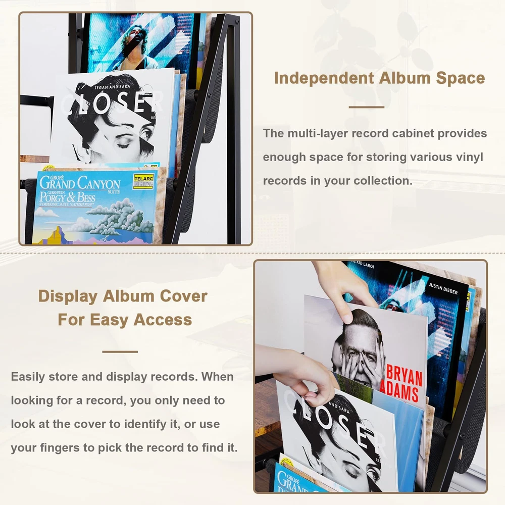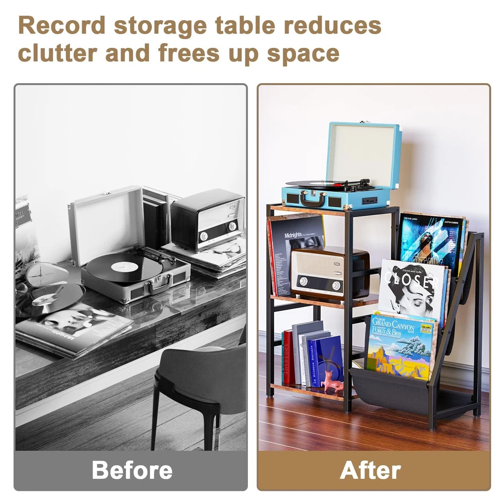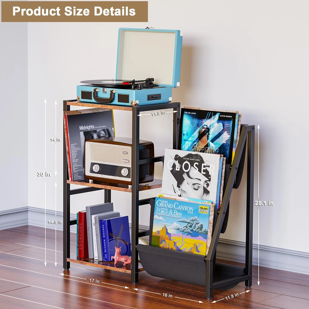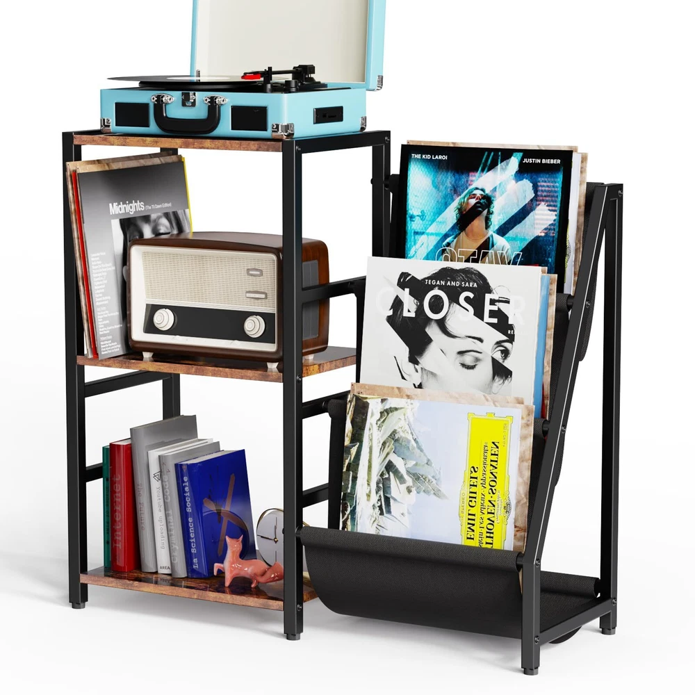 Vinyl Record Display Stand with 3-Tier Storage – Retro Turntable Table Elevate your vinyl collection with this 3-tier vinyl record display stand . Designed for music enthusiasts, this retro-inspired turntable table offers ample storage for over 200 albums, blending style and function to create the ultimate music corner. Its sturdy construction and elegant design make it perfect for showcasing your record player and albums while complementing your decor. Features Multifunctional Design : Provides versatile storage for record players, albums, speakers, books, magazines, CDs, and collectibles. Large Storage Capacity : Holds over 200 vinyl records with additional space for media essentials and decorative items. Sturdy & Durable : Crafted from high-quality wooden boards, a robust iron frame, and soft Oxford cloth for scratch-free storage. Retro Aesthetic : Combines mid-century style with modern functionality, adding charm to any living room, bedroom, or office. Easy Assembly : Includes detailed instructions and labeled components for hassle-free setup. Product Dimensions Size : 33"(L) x 30"(H) x 11.8"(W) Organize your collection by genre, artist, or era and create a functional yet stylish music haven. This vinyl record stand is the perfect choice for collectors who value both form and function! We offer 1-5 Days Free shipping & 30-Days Free returns