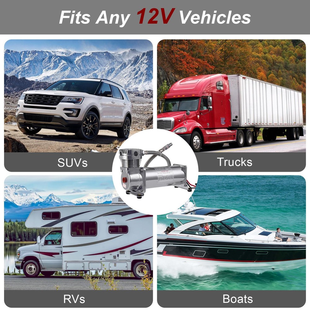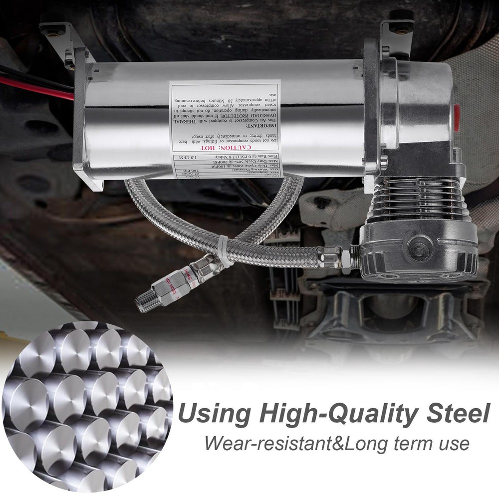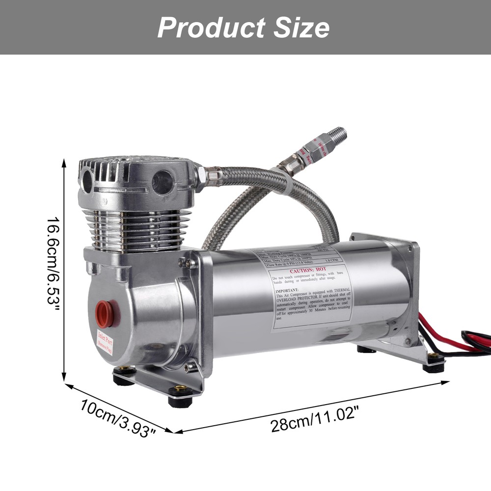 Store category Sign Up Now ! You may also like Product Description High working pressure: The maximum working pressure can reach 200PSI, which meets the needs of high-pressure inflation and is suitable for a variety of inflation scenarios. Energy-saving performance: The duty cycle is 100% at 100 PSI and 50% at 200 PSI, achieving efficient energy use and longer motor life. Portable design: Compact size, easy to carry and install, suitable for various 12V vehicles, including SUVs, trucks, RVs and ships. Powerful power: The 12V permanent magnet motor provides strong power, fast inflation, and improved efficiency, suitable for rapid use in emergency situations. Wide application: Suitable for inflating vehicle tires, air horns and other 12V equipment to meet diverse inflation needs. Durable material: Made of high-quality steel, it has high tensile, compression, bending and shear strength to ensure long-term stability and durability. Safe operation: It is recommended to install under the guidance of professionals and wear safety glasses or goggles when using it to ensure safe operation. Convenient maintenance: Equipped with standard 1/4-inch stainless steel braided hose, fuse and mounting parts, it is convenient for users to perform daily maintenance and quick replacement. Important advice: Make sure to use a 12V DC power supply for installation to avoid equipment damage caused by voltage mismatch. Check the air compressor and its accessories regularly to ensure they are in good working condition. Specification. Air Pump Parameters: Working Voltage:12 Volt Size:280(L)×100(W)×166(H)mm Max Working Pressure:200 PSI Max Amp Draw:23 Amps Duty Cycle:100%@100 PSI Duty Cycle:50%@200 PSI Flow rate is 1.75 CFM @ 0 PSI Pack list. Compressor, Filter, Valve*4 and Installation Kit Payment Delivery details Terms of sales About us Feedback & DSRs Payment Before you palce an order, please kindly make sure that you have a paypal account. We accept PAYPAL payment only. Payment should be completed within 2 days after auction closed, or unpaid dispute will be filed for an closing auction. An unpaid case will be filled after 4 days. Delivery details We ship to your eBay address. Each package will be shipped to US by UPS Regular Parcel with tracking number. Please check your shipping address carefully before checkout, it can't be changed if order completed. All items will be shipped within 1-2 business day upon receipt of payment.Orders placed on weekend will be shipped within 3 days. If you do not receive your item in 7-10 business days.please contact us immediately for further assistance. We will be responsible for any damages or losses incurred in the shipping process. About us We maintain high standards of excellence FIVE STAR and strive for 100% customer satisfaction! Positive Feedback is very important to us. We hope that you contact us immediately Before you give us neutral or negative feedback, so that we can satisfactorily address your concerns. We promise to offer the lowest price and high quality produce. Our working time: From Monday to Friday(9:30 am to 18:00pm), we don't working on holidays ,hope you can understand and know that , thank you. Please always talk to us via ebay Message. We appreciate your business and look forward to growing our e-Bay sales with satisfied customers. Feedback Contact us If you have any questions, please feel free to contact with us by ebay Message during our business hours ( 9:30a.m. to 5:30 p.m.), or email us through eBay, we will try our best to help you to resolve it. For any presale or after-sale questions,please do feel free to email us! Due to the time difference, each email will be replied within 1 working day,and weekend will be delayed a bit. Feedback
