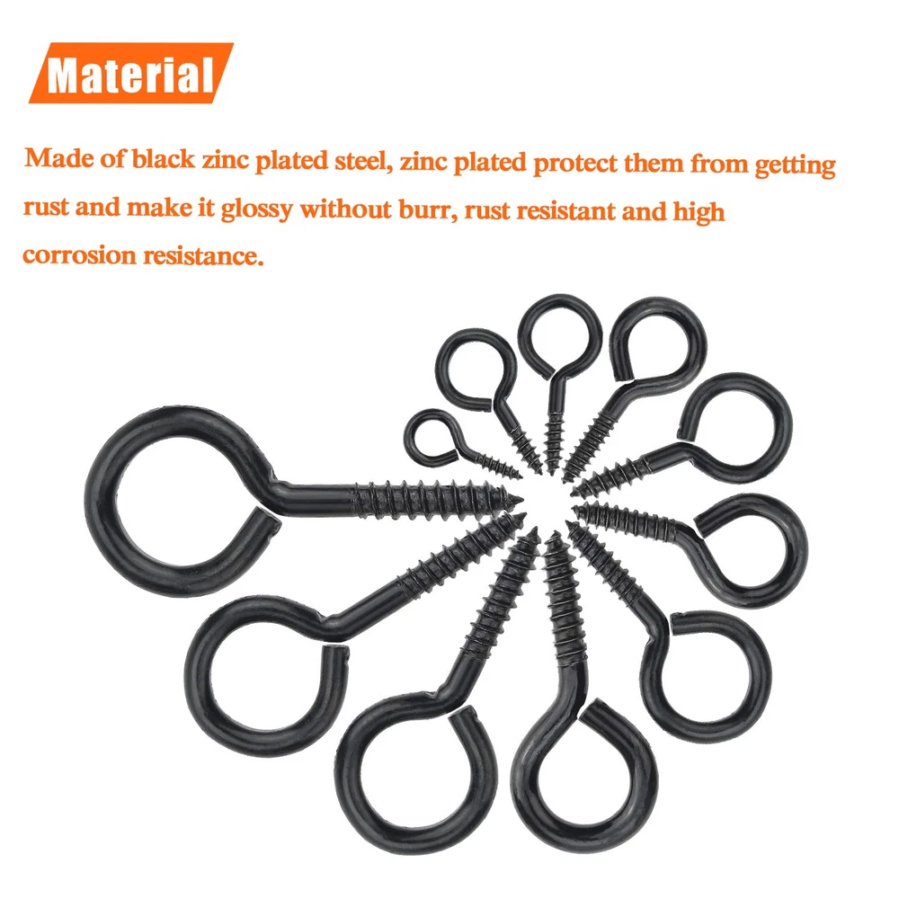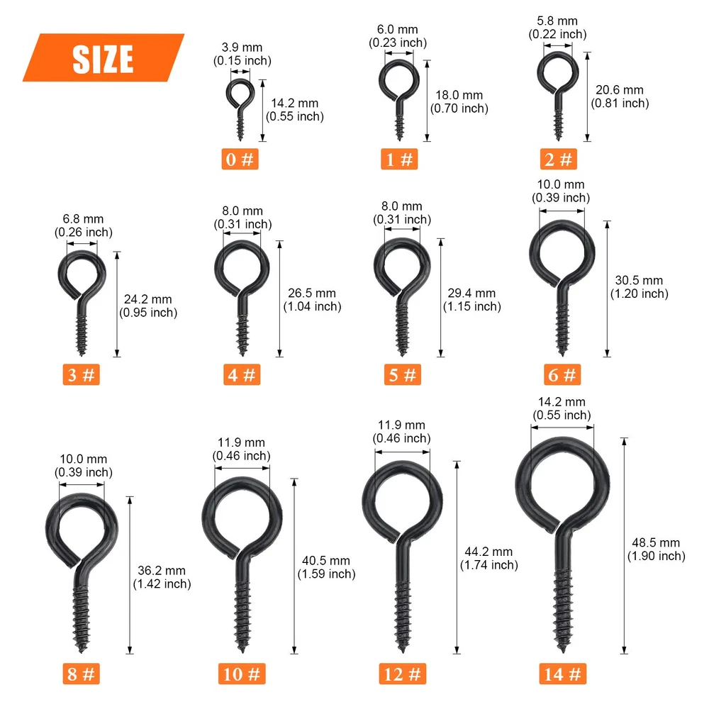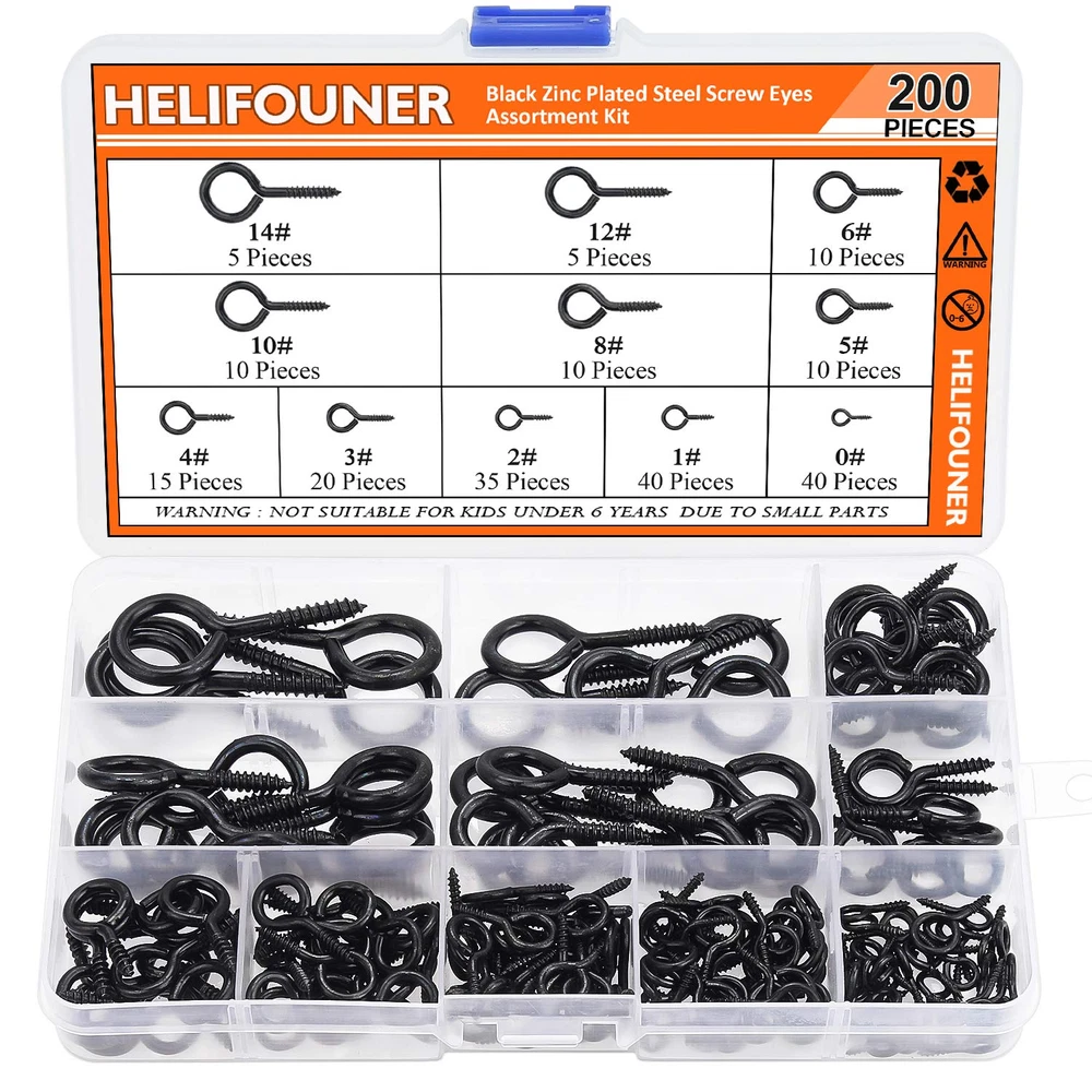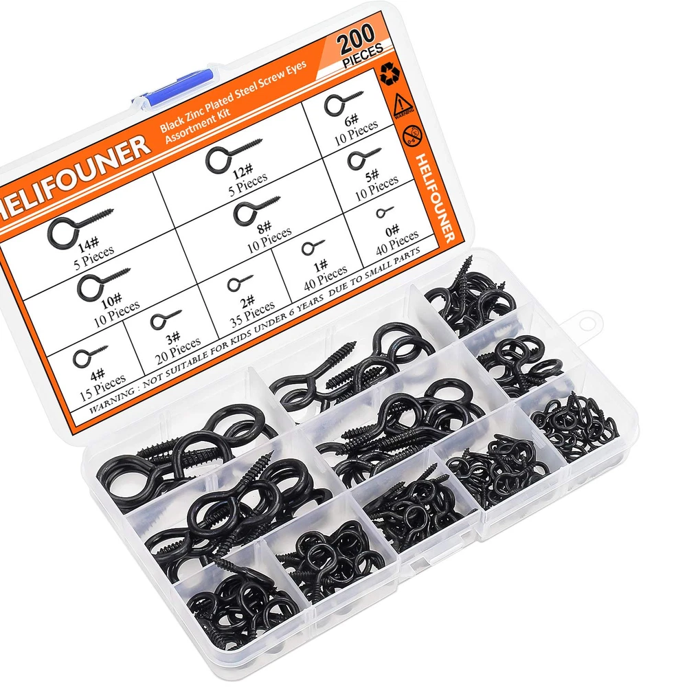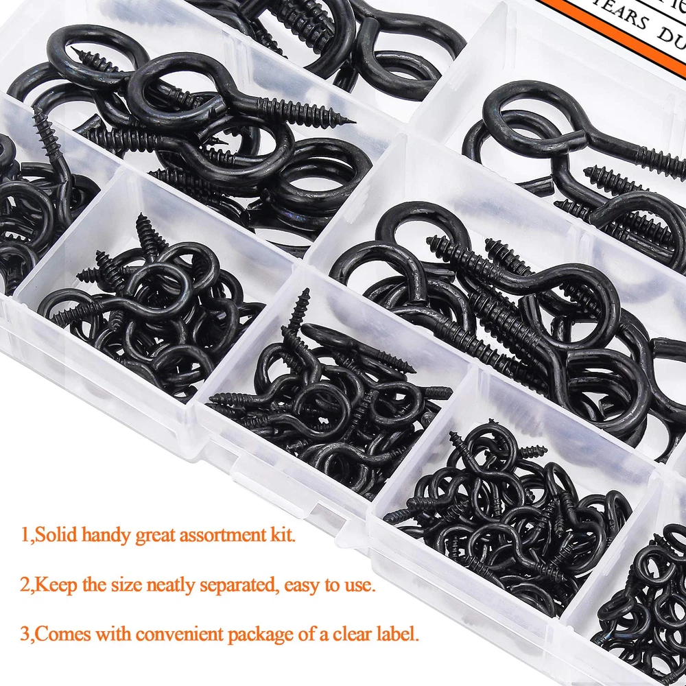 【Sizes】0#, 1#, 2#, 3#, 4#, 5#, 6#, 8#, 10#, 12#, 14#, total 11 frequently used sizes can meet your different needs. 【Material】These screw eyes are made of good carbon steel with plated zinc on the surface, it can increase durability and be effectively to prevent rust. 【Wide Applications】Perfect for securely hanging light weight items such as lights, picture, arts, small rope cords, chains, and more. Widely used in wooden, wood hand work, good for home, workplace, office, indoor and outdoor applications. 【Unique Design】Deep screws and sharp screws port make easy to install and durable to use for such a long time, the eye screws tip of the thread is tapering and can be easily installed and inserted into the area you want. 【Package】200 pieces 11 sizes in total, package in a durable transparent box with label. It is easy to distinguish the size of the product, you can choose the suitable one to meet all your needs. Perfect for securely hanging light weight items such as lights, picture, arts, small rope cords, chains, and more. Specifications: Product Type: Screw Eyes Quantity: Total 200 Pieces Material: Black Zinc Plated Steel Size: 0#, 1#, 2#, 3#, 4#, 5#, 6#, 8#, 10#, 12#, 14# Features: 1, Zinc plated steel resists rust and corrosion, ensures reliable and consistent performance. 2, Easy to Install: These screw eyes are very easy to install for the thread tip is tapering and can be easily inserted into the area you want. 3, Perfect for hanging objects on walls; Widely applied to accessories such as ornaments, toys, craft gifts, various wooden handles, etc. 4, 200 pieces including 11 sizes screw eyes with a container; different compartment in the container are suitable for diverse size screw eyes, keep them in place Package included: 40 x 0# Screw Eyes 40 x 1# Screw Eyes 35 x 2# Screw Eyes 20 x 3# Screw Eyes 15 x 4# Screw Eyes 10 x 5# Screw Eyes 10 x 6# Screw Eyes 10 x 8# Screw Eyes 10 x 10# Screw Eyes 5 x 12# Screw Eyes 5 x 14# Screw Eyes Packing Quantity: 200Pieces Note: 1, Warning: small parts, keep away from children and kids. 2, If you have any questions, please feel free to contact us at any time.